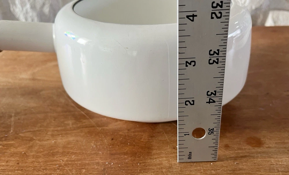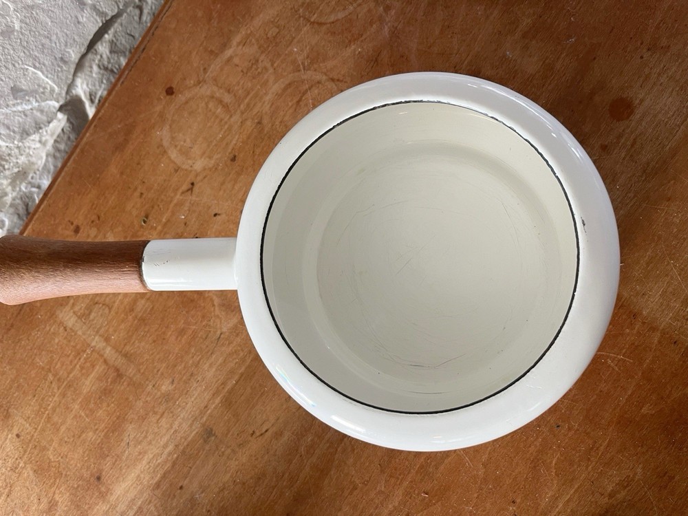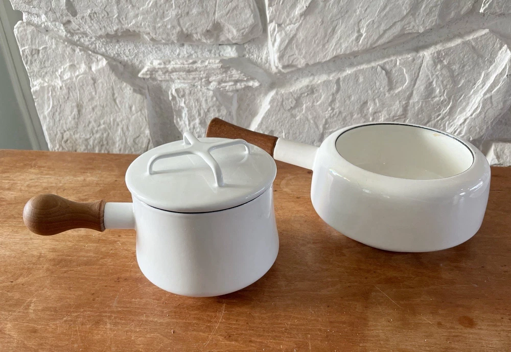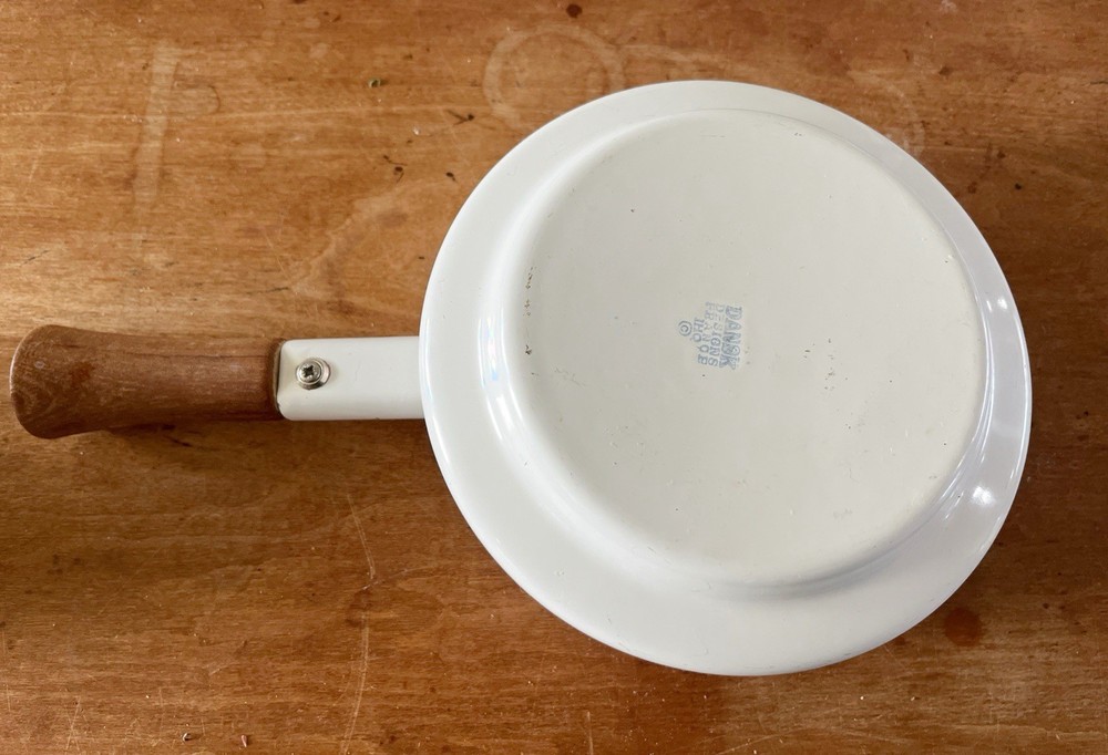 Dansk JHQ (Jens Quistgaard) 1.5 quart sauce pan made in France. White enamel and teak Very good, vintage, gently used condition. No chips or major scratches. No lid- great replacement for you if you have this pan and it’s getting banged up. Measures 7”across, and just under 4” deep. Last photo shows the other Quistgaard pan I have listed separately. Happy to ship together if you purchase multiple items!