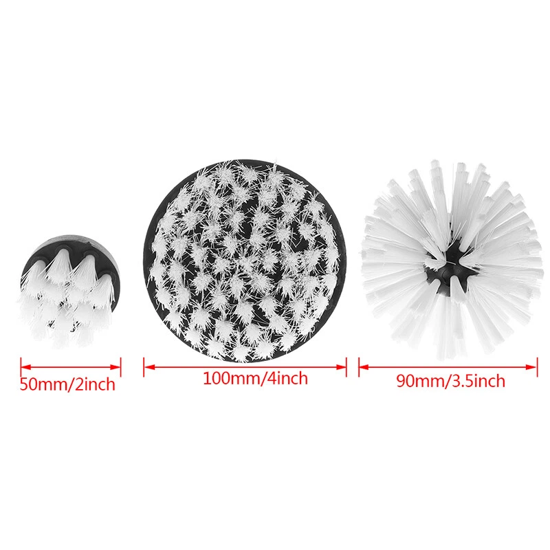 Features: 100% brand new and high quality This kit contains medium stiffness nylon power brush and can be connected to your favorite cordless drill. Come with 3 different sizes and shapes of brushes for cleaning around your bathroom surfaces All 3 brushes have 1/4 inches to change the shaft quickly.(Note: Cordless drill does not include! ) Well made nylon bristles will not scratch and can be used on tubs, sinks, baseboards, fiberglass shower enclosures, shower door tracks, and porcelain. Save your time and effort to a great extent. Specification: Material: Nylon bristle Size: 2", 3.5", 4" Color: White Note: Please allow 1-3cm (0.4-1.18") difference due to manual measurement and slight color variation for different display setting Thank you and nice day! Package includes: 1PCS or 3PCS/Set as choice Preview: