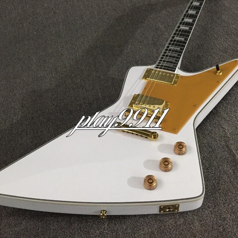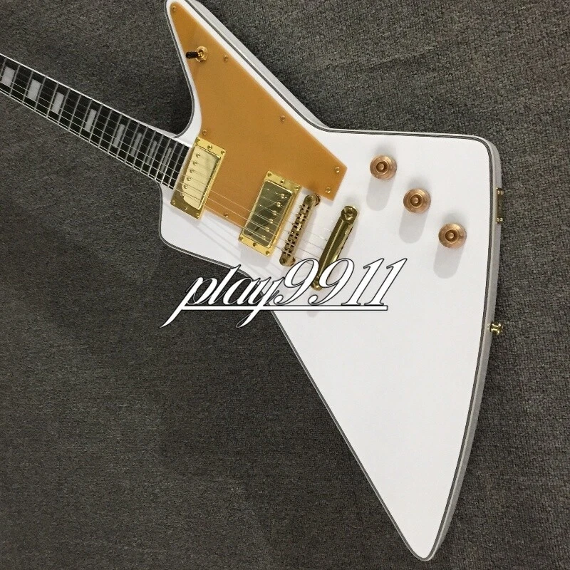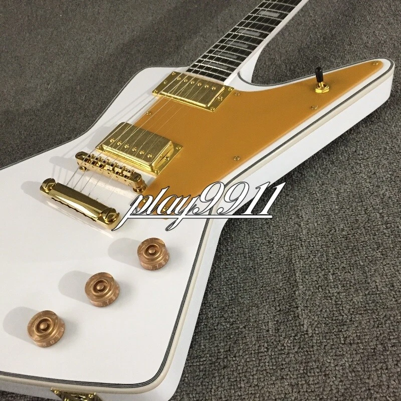White Explorer 70s HH Pickups Electric Guitar Gold Pick Guard Factory Outlet