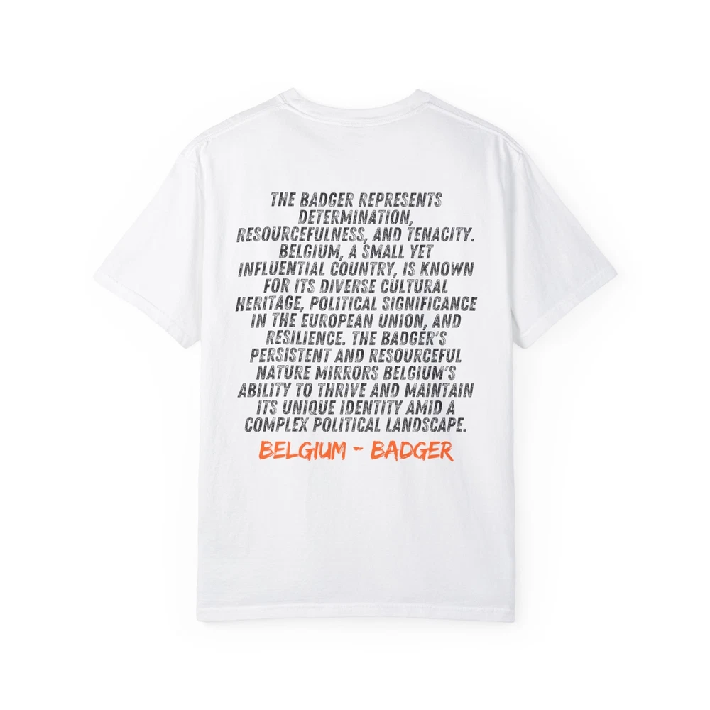 Celebrate your favorite Euro 2024 Round of 16 teams with our exclusive T-shirts, each uniquely designed with an animal symbolizing the country's strengths and spirit. Belgium - Badger: The badger represents Belgium's determination, resourcefulness, and tenacity. UEFA Euro 2024 Football, Round of 16 T-shirts, Animal Symbol T-shirts Comfort Colors introduces the “Comfort Colors 1717” garment-dyed t-shirt; a fully customizable tee made 100% with ring-spun cotton. The soft-washed, garment-dyed fabric brings extra coziness to your wardrobe while the relaxed fit makes it an excellent daily choice. The double-needle stitching throughout the tee makes it highly durable while the lack of side-seams helps the shirt retain its tubular shape. Discover all 58 colors in our Comfort Colors 1717 color charts below. .: The Comfort Colors 1717 tee is made with medium fabric (6.1 oz/yd² (206.8 g/m²)) consisting of high quality, 100% ring-spun US cotton for long-lasting comfort. .: The relaxed fit keeps the wearer comfy in both casual and semi-formal settings while the crew neckline delivers that classic, neat style which makes it perfect for accessorizing. .: The pre-shrunk fabric ensures a consistently great fit. Check all available sizes in our Comfort Colors 1717 size chart. .: All Comfort Colors 1717 shirts feature pre-shrunk cotton for size retention and a signature sewn-in twill label. .: Made using 100% US cotton that is ethically grown and harvested. Gildan is also a proud member of the US Cotton Trust Protocol ensuring ethical and sustainable means of production. .: Available in 58 colors. Check all available colors in our Comfort Colors 1717 color charts