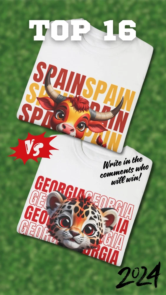 Celebrate your favorite Euro 2024 Round of 16 teams with our exclusive T-shirts, each uniquely designed with an animal symbolizing the country's strengths and spirit. Georgia - Leopard: The leopard symbolizes Georgia's strength, independence, and agility. UEFA Euro 2024 Football, Round of 16 T-shirts, Animal Symbol T-shirts Comfort Colors introduces the “Comfort Colors 1717” garment-dyed t-shirt; a fully customizable tee made 100% with ring-spun cotton. The soft-washed, garment-dyed fabric brings extra coziness to your wardrobe while the relaxed fit makes it an excellent daily choice. The double-needle stitching throughout the tee makes it highly durable while the lack of side-seams helps the shirt retain its tubular shape. Discover all 58 colors in our Comfort Colors 1717 color charts below. .: The Comfort Colors 1717 tee is made with medium fabric (6.1 oz/yd² (206.8 g/m²)) consisting of high quality, 100% ring-spun US cotton for long-lasting comfort. .: The relaxed fit keeps the wearer comfy in both casual and semi-formal settings while the crew neckline delivers that classic, neat style which makes it perfect for accessorizing. .: The pre-shrunk fabric ensures a consistently great fit. Check all available sizes in our Comfort Colors 1717 size chart. .: All Comfort Colors 1717 shirts feature pre-shrunk cotton for size retention and a signature sewn-in twill label. .: Made using 100% US cotton that is ethically grown and harvested. Gildan is also a proud member of the US Cotton Trust Protocol ensuring ethical and sustainable means of production. .: Available in 58 colors. Check all available colors in our Comfort Colors 1717 color charts