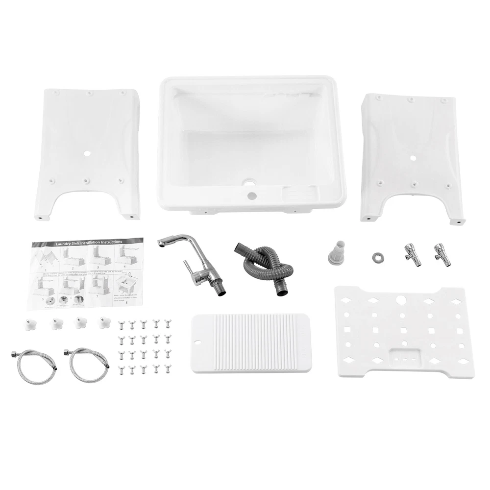 UPC: Does not apply Faucet Included: Yes Features 2: Great Durability,stable performance Inner Bowl Side-to-Side Width: as pictures shown Color: White Material: pp Type: Freestanding Plastic Laundry Sink Shape: Rectangular Sink Mount Type: Freestanding Item Height: Does not apply Color/Finish: White Water Leakage Device: Flip Type Sink capacity (gallons): 20 Sink Type: Other Faucet Opening: Single Hole Bowl Shape: as pictures shown Item Width: Does not apply Style: Modern Legs Included: Yes Faucet Handle Type: Lever Kit: Yes Supply line length (in): 12 gtin13: Does not apply Installation Method: Freestanding Brand: Does not apply Inner Bowl Front-to-Back Length: as pictures shown Rust Resistant: Yes Item Length: Does not apply Mounting: Freestanding Side Sprayer Included: Yes Color Family: White Room: Any Room, Basement, Bathroom, Bedroom, Caravan, Garage, Dining Room, Kitchen