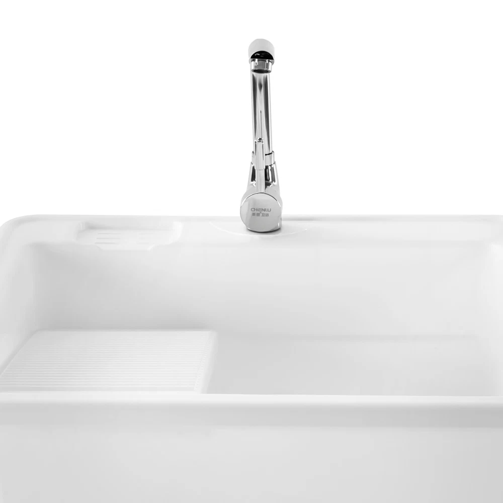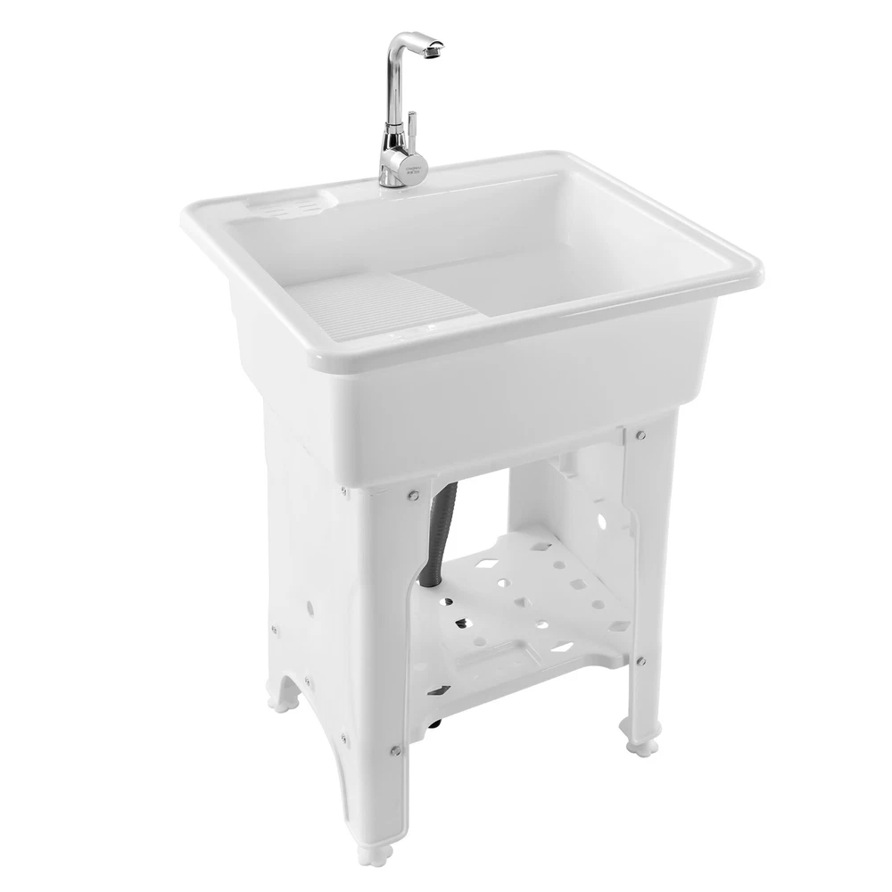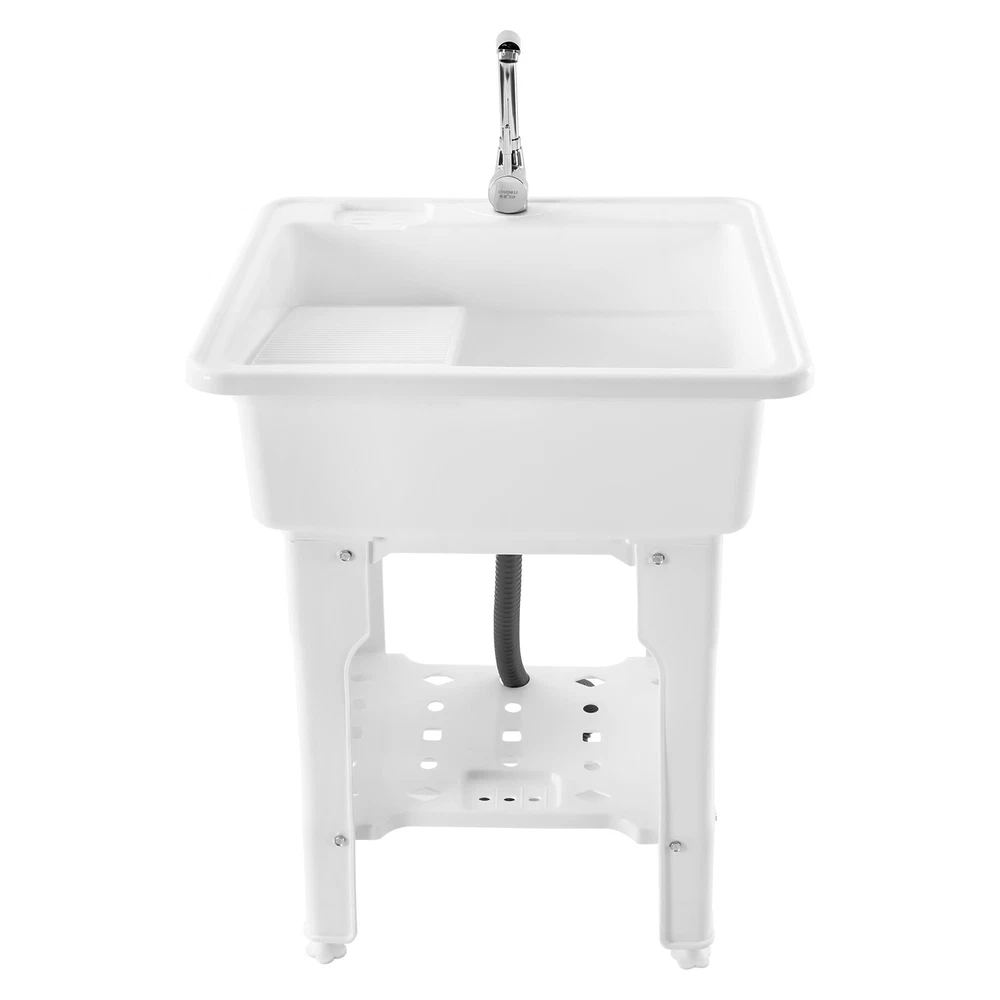 White Freestanding Laundry Utility Sink with Faucet – Spacious Wash Station