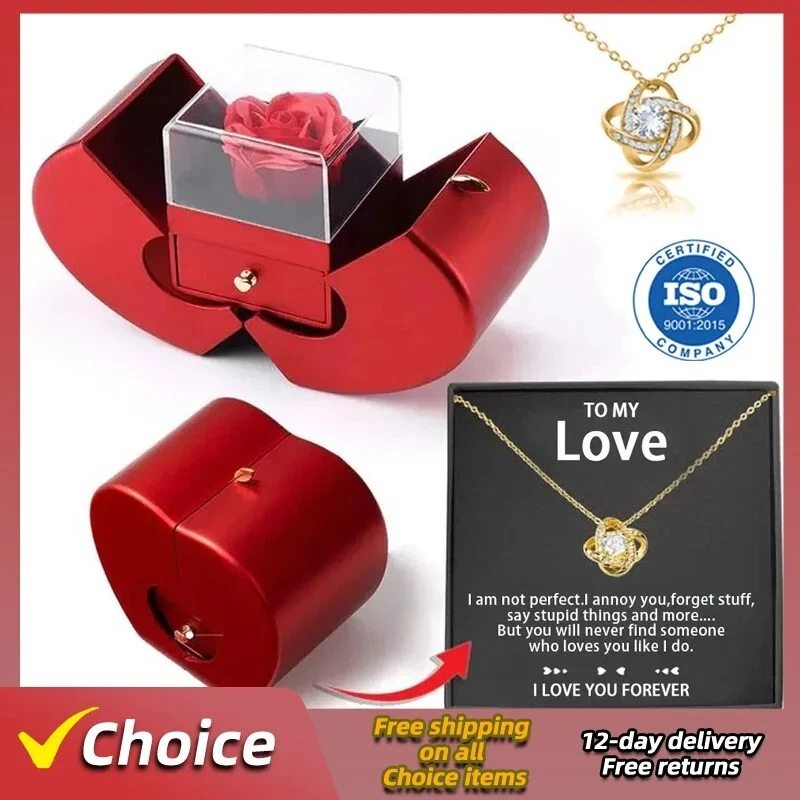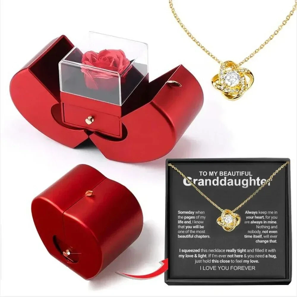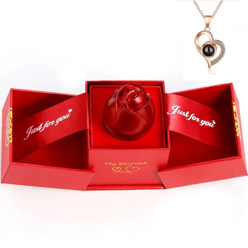 White Gold Necklace with Real Rose to My Love Forever Rose Heart Box to My Love