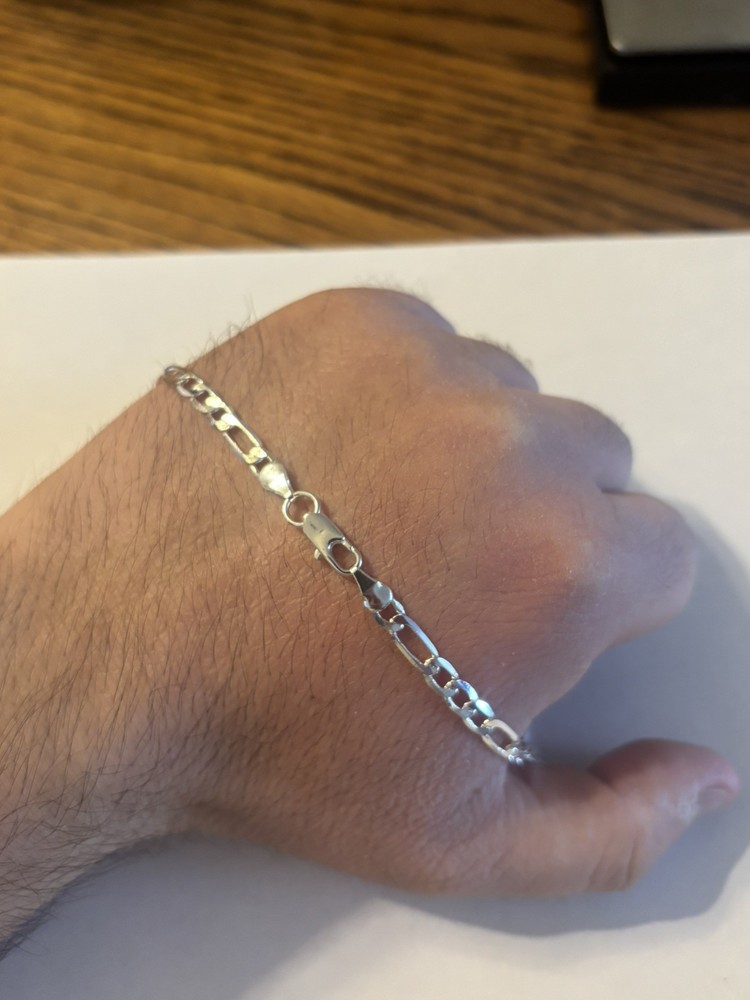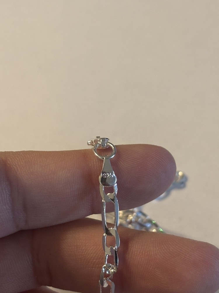 This White Gold Plated 925 Sterling Silver 24" 3.8mm Figaro Chain Necklace is a stylish and hypoallergenic piece of fine jewelry. It comes with a lobster clasp for easy wearing. The necklace is nickel-free, and made with high-quality sterling silver, ensuring durability and safe wear for those with sensitive skin. The 24-inch chain features a classic Figaro style, making it a versatile accessory for everyday wear or special occasions. OPEN TO OFFERS. Please purchase with confidence that what you order is what you receive. Ships fast and in a gift box.