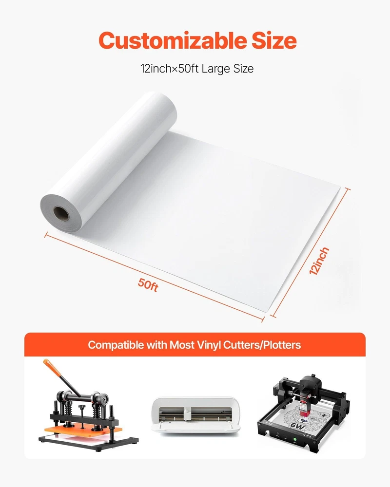 Store Categories Store Categories Other Heat Transfer Vinyl, 12 in x 50 ft, Glossy White HTV Iron on Vinyl Roll, Easy to Cut and Weed, Strong Adhesion, Compatible with Cutting Machines, for Various Materials, T-shirts, Pillows, Hats Product Description 12 in x 50 ft White Heat Transfer Vinyl Roll This professional-grade glossy iron on vinyl is made from premium PVC and delivers smooth cutting, clean weeding, and accurate transfers. Whether you're a first-timer or a seasoned crafter, it helps bring your creative ideas to life with ease. The HTV vinyl includes a tacky PET backing that sticks to garments for positioning. You can adjust manually before pressing to ensure precise placement without design shifting—no second guessing required. Our HTV features a specially treated glossy surface that reflects a vibrant, pearlescent shine under sunlight. The finished design appears bold, vivid, and full of dimension, adding a premium touch to any item. This HTV heat transfer vinyl applies to T-shirts, hats, shoes, socks, tote bags, pillows, and more. It's ideal for creating personalized keepsakes for family, friends, and classmates—every piece becomes a unique and meaningful creation. Our heat transfer vinyl for T-shirts is simple to use: design your image, cut and weed the vinyl, place it on the item, apply heat, and peel away the carrier sheet. A professional-looking result is easy to achieve, even for those new to heat transfer projects. Shipping Policy Returns Policy Payment Policy Customer Service Shipping Policy Handling Time: Orders ship within 1–3 business days. S hippin g From : All items are shipped from our U.S. local warehouse. C arri ers Used: We will choose the most suitable carrier based on the buyer’s location, including UniUni, Gofo, UPS, and FedEx etc. Delive ry Range : Fast and reliable deliver y within the United S tates. Not e : If you need expedited shipping, please co n tact us before placing your order. Your purchase is shipped directly to you as soon as we have received your cleared payment. We will send information on eBay or email if the parcel was delayed due to our holiday. Returns Policy We offer 30-day returns for items with quality-related issues. If the item arrives damaged, defective, or not as described, please contact us immediately for a replacement or refund. To ensure a smooth process, please keep the item in its original condition and provide photos of the issue when possible. We strive to make returns fast, transparent, and hassle-free. Payment Policy Payment must be received within 7 business days of auction closing.We ship to your eBay or Paypal address. Please make sure your eBay and Paypal addres s is correct before you pay. Your payment is always secure and protected through eBay’s trusted checkout system. Customer Service We respond to messages promptly, often immediately during business hours. In all cases, we guarantee a reply within 12 hours. Our team is committed to p roviding friendly, efficient, and professional support for any questions regarding your order, logistics, or product details. Your satisfacti o n is our top priority. Copyright © 2023 Dianxiaomi