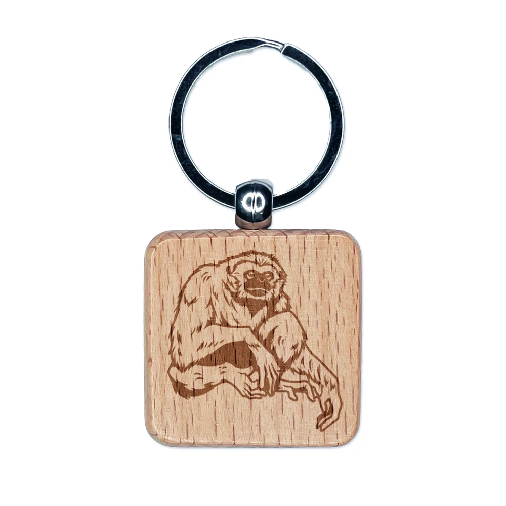 White Handed Gibbon Engraved Wood Square Keychain Tag Charm