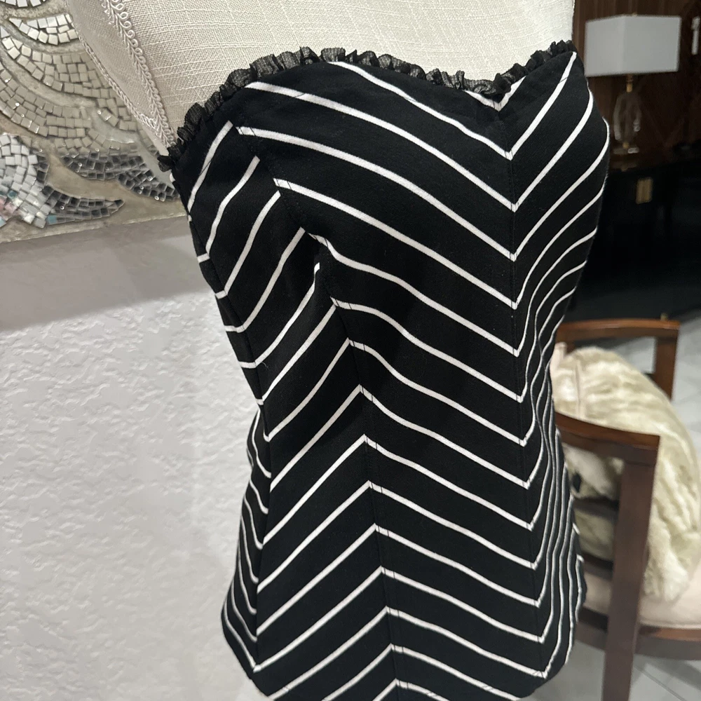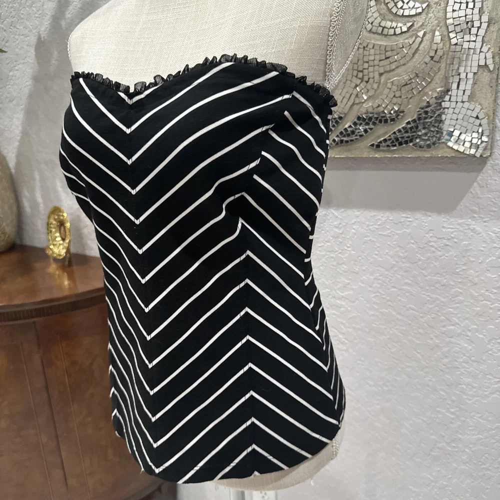 White House Black Market Black With Herringbone White Stripes Strapless M. Condition is Pre-owned. Shipped with USPS Ground Advantage.