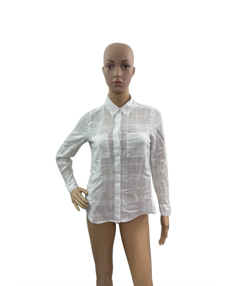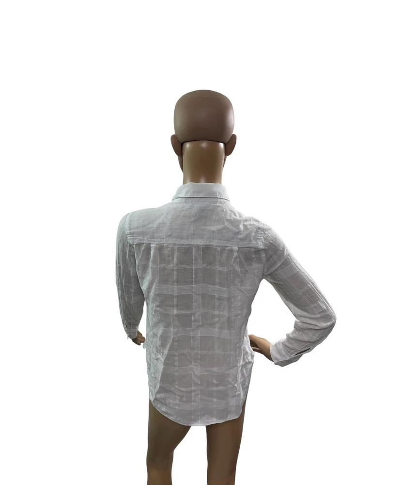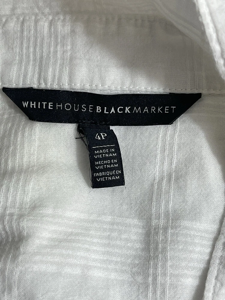 White House Black Market Women’s Size 4P Long Sleeve White Button Up Shirt Armpit to armpit 18” Total length 22”/25” Measurements taken laying Please look at all the pictures S they are part of my description Smoke free pet free home