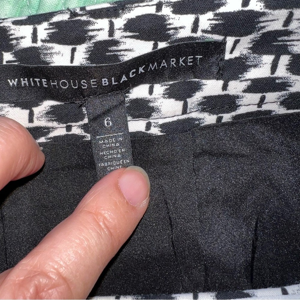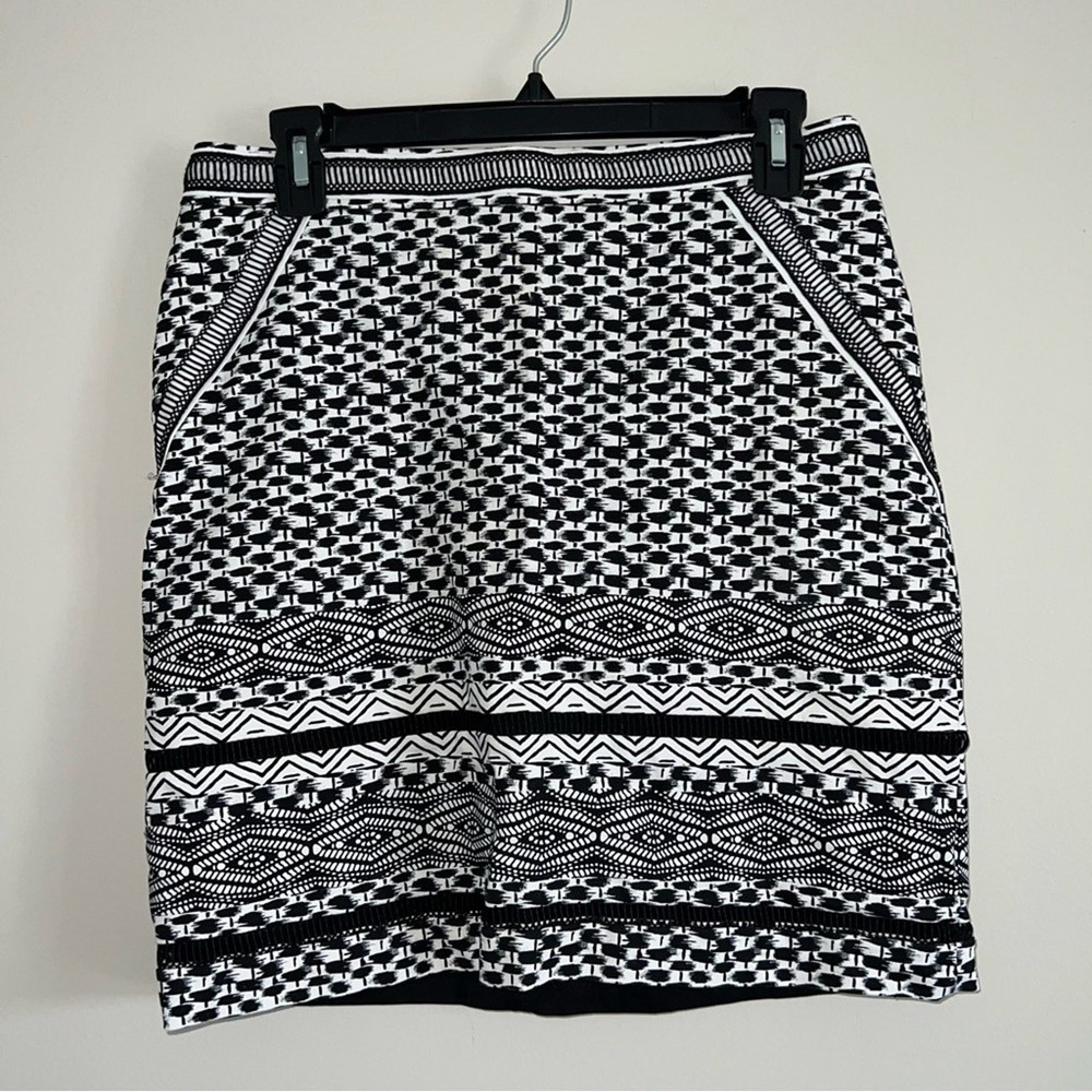 White House Black Market Womens Size 6 Skirt Short Black White Print - Good pre-owned condition - Fully lined Flat lay measurements (approximate): - waist 14" - length 18.5"