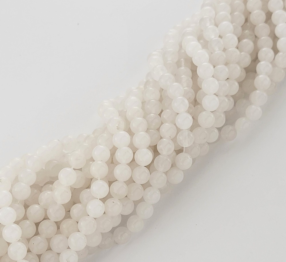 White jade natural stone beads, 4mm/6mm/8mm/10mm. MOHS hardness: 6.5-7 Stone of Protection. Some say it may promote positivity and amplify energy. Also said to promote emotional healing. My goal is to consistently provide the best beads available. You'll always receive excellent quality beads from me and I will never lie to you about their grade. Our photos are taken in-house so you'll always see what you're getting. Details: - Strand length: approximately 15" - Price is per strand. - Bead sizes are approximate and may have a variation of +/- 0.5mm. - Drill hole sizes on MOST beads - 4mm beads: about 0.5mm; 6-8mm beads: about 0.7-0.8mm; 10-12mm beads: about 0.8-1.0mm - Drill hole sizes are approximate and may have a variation of +/- 0.2mm. - All natural gemstones vary in color and pattern. We take our photos in-house so you can see the actual product we carry, but there is some variance between batches. - We generally ship Mon-Fri (except holidays) and try to ship same-day when your order is received before 2pm CST. *Number of beads per 15" strand* Our beads are sold by the strand, not the number of beads. Please use the following chart for reference only for smooth, round beads. 4mm dia - about 90pcs/strand 6mm dia - about 60pcs/strand 8mm dia - about 46pcs/strand 10mm dia - about 39pcs/strand 12mm dia - about 33pcs/strand Return Policy Satisfaction guaranteed with our 14-day return policy. Buyer is responsible for all shipping costs. Returned product must be in salable condition and all beads must be on the original strand.