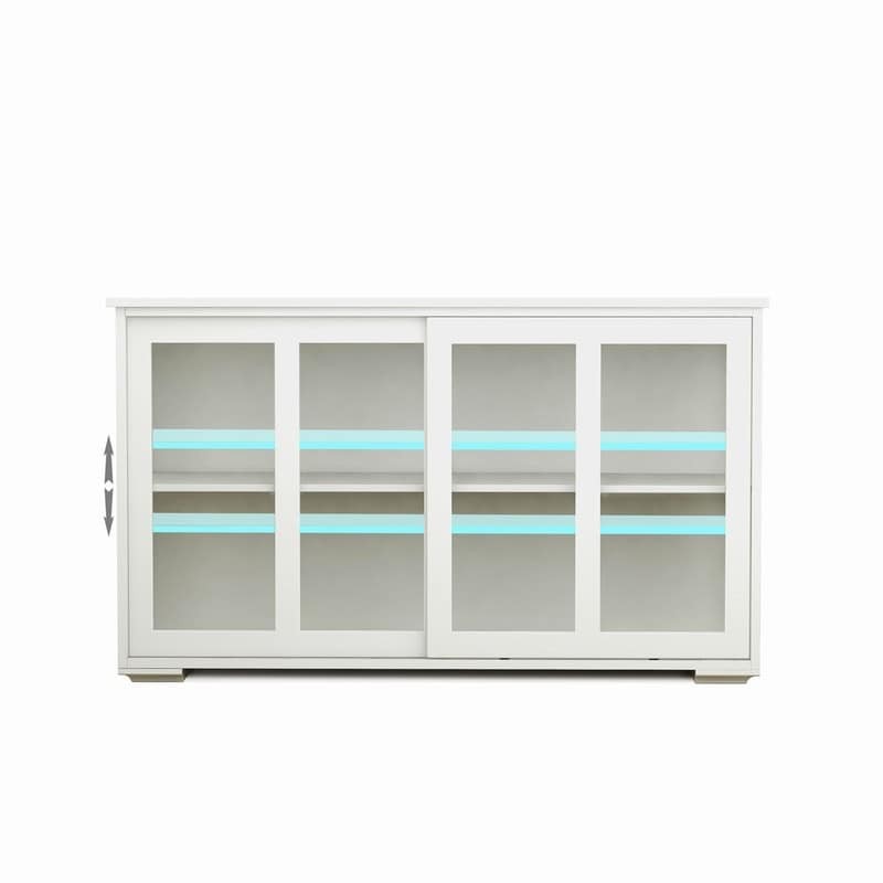 Product Features Stability & Solidity: Constructed by E1 grade MDF board, features solidity and stability. The medium density fiberboard won't be affected with damp and won't deform like normal wood after years of using. Large Storage Space:Two sliding doors which are more convenience open and close the doors. Two shelves inside enlarges your storage demands, and the middle shelf can removed or adjust height to reach out your different storage requires.Spacious top for displaying kitchen tools or as a coffee table top. Practical: Proper size for sideboard buffet table and coffee tables in your kitchen to enjoy extra storage in your kitchen with this sideboard. Easy to Assemble:It will come with one package which include all the boards and screws in. Non-slip Bottom: We have non-slip Free Shipping Over $49.99* Details Kitchen Storage Stand Cupboard With Glass Door-White Product Description: Product Features Stability & SolidityConstructed by E1 grade MDF board, features solidity and stability. The medium density fiberboard won't be affected with damp and won't deform like normal wood after years of using. Large Storage Space:Two sliding doors which are more convenience open and close the doors. Two shelves inside enlarges your storage demands, and the middle shelf can removed or adjust height to reach out your different storage requires.Spacious top for displaying kitchen tools or as a coffee table top. PracticalProper size for sideboard buffet table and coffee tables in your kitchen to enjoy extra storage in your kitchen with this sideboard. Easy to Assemble:It will come with one package which include all the boards and screws in. Non-slip BottomWe have non-slip mat on the for legs bottom which can be prevent the cabinet slip away or scratch your floor.