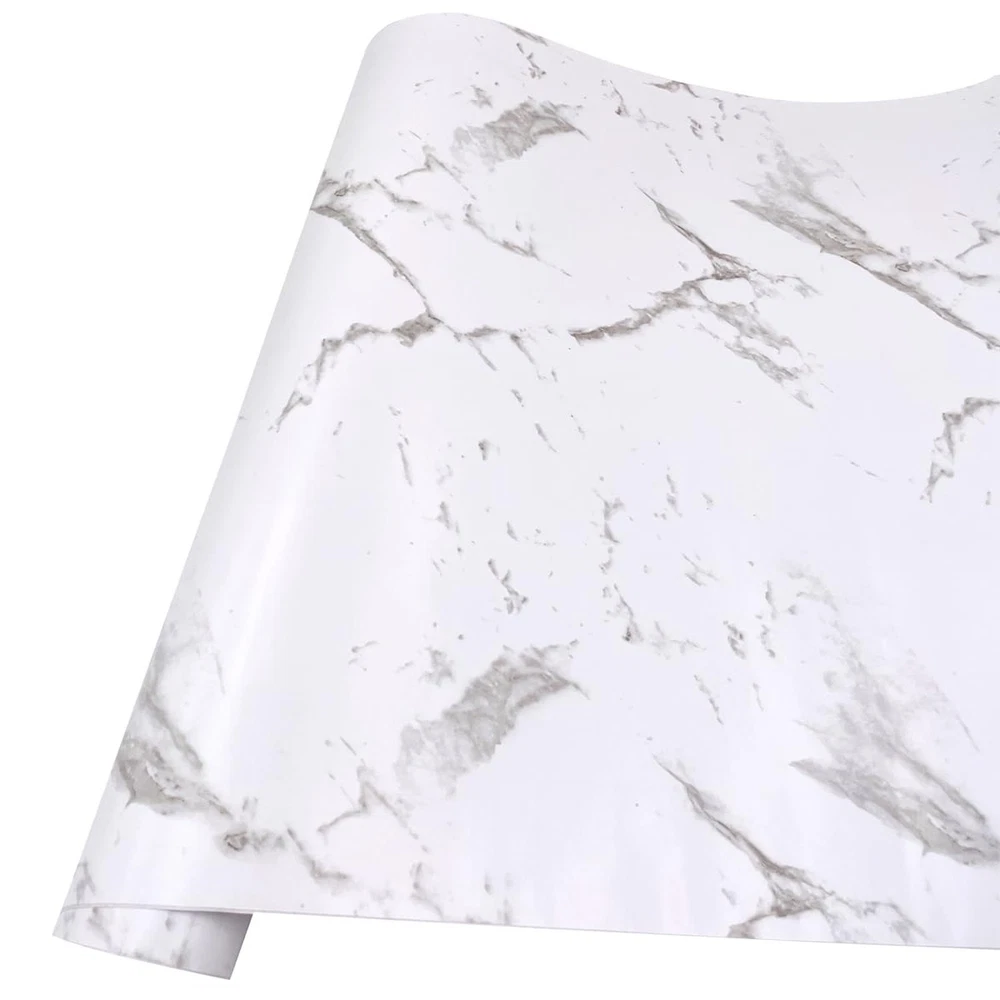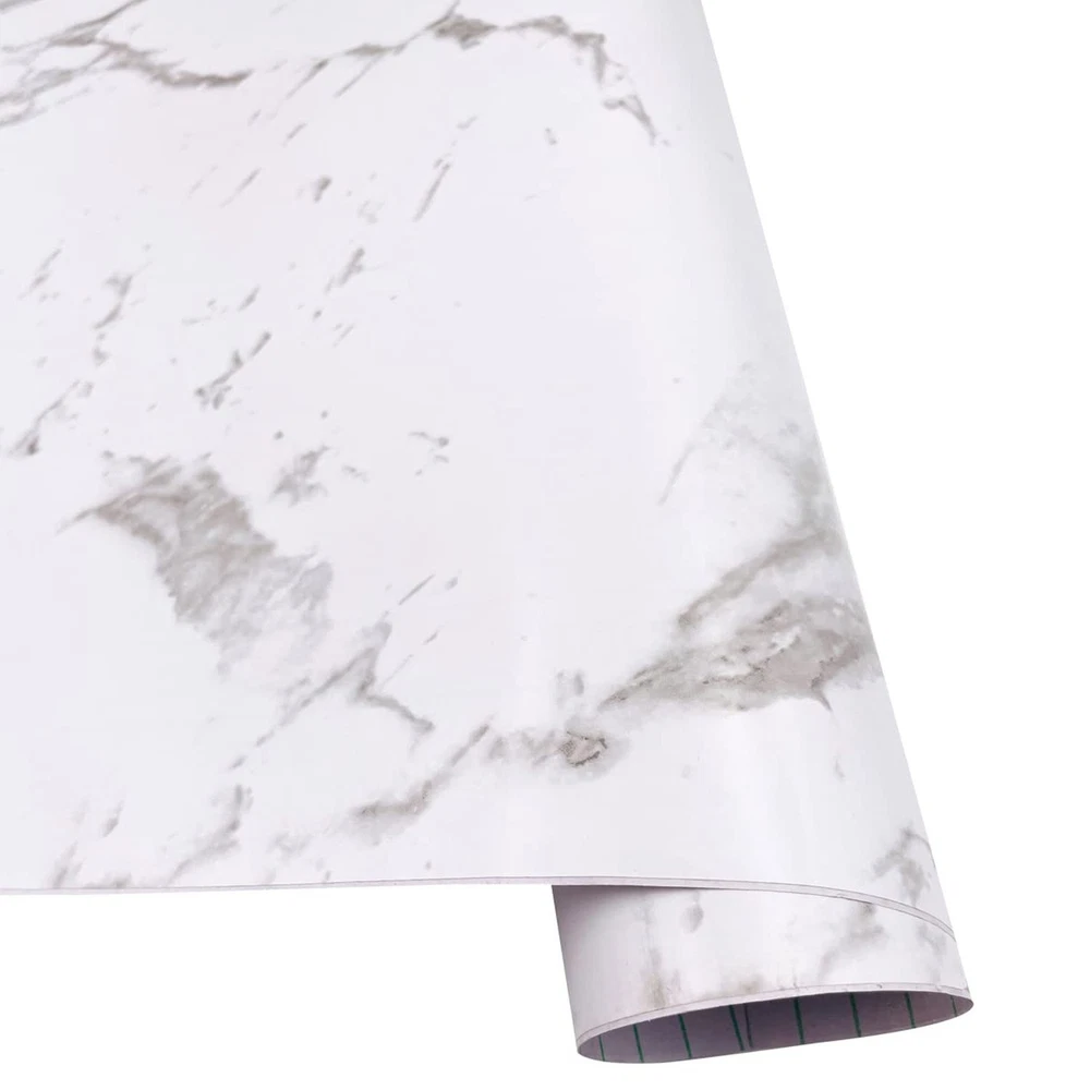 White Marble Pattern Shelf and Drawer Liner Peel-Stick Kitchen Storage Sidebo...