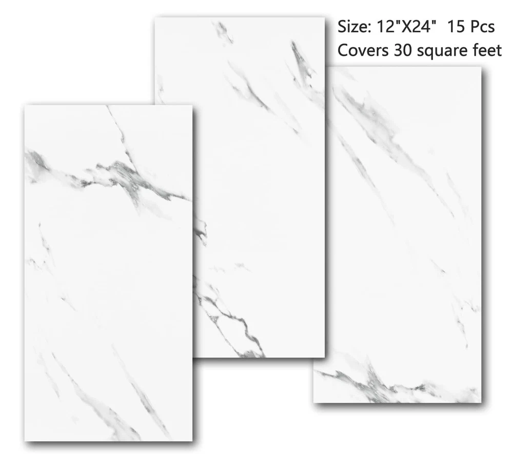 Name: Marble Vinyl Flooring Peel and Stick Color: Black Size: 12In X24In, one pack contains 15 pcs product, cover about 30 sq.ft How to Apply this marble peel and stick flooring? 5. Please make sure the surface you want to cover is clean and flat, so that it can work well 6. Cut it into desired shape according to your need 7. This linoleum flooring is self adhesive, just need peel off the backing paper and stick it 8. Enjoy the perfect result Warm Notes: This marble vinyl flooring is shipped on roll, so when you received, please don't be surprised, just lay flat for two or three hours or flattened by pressing with a heavy object, it will not affect your use It's peel and stick floor tile, so please don't use it on wall, if you want to use it on wall, please use extra glue to make it stick well 🍋🍋[Size]: One pack contains 15 marble-look peel and stick floor tiles, each of which is 12 x 24 inches in size and 0.57mm thick. It can cover an area of 30 square feet. The marble appearance is very suitable for homeowners and renters who want to renovate their floor tiles. 🍋【Easy to Install】Just peel and stick. Self adhesive vinyl flooring are easy to apply. 🍋【Feature】White marble peel and stick vinyl floor tile is made of durable premium vinyl material, this peel and stick tile floor is waterproof and oil proof performance which guards your floor. Just wipe up the stains with a soft wet cloth. 🍋【Application】This peel and stick floor tiles for floor, like bedroom, living room, bathroom, kitchen, laundry room, office, garage, gym, nursery, camper, RV, basement, storage, farmhouse, cabin, attic, school projects, etc. 🍋【Customer Service】 We stand by our floor peel and stick tiles. If you any reason you are not completerly satisfied with your purchase, please contact us.