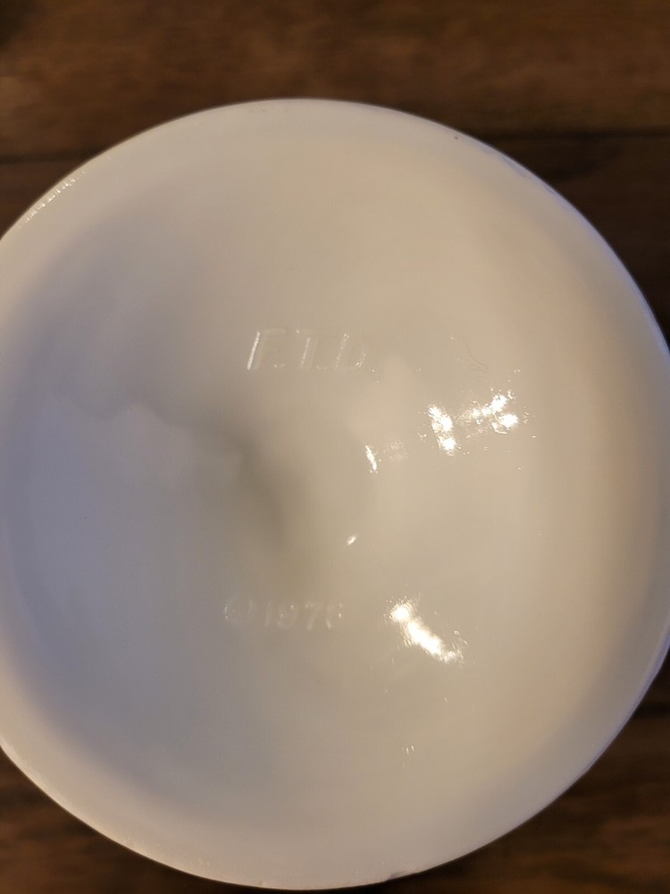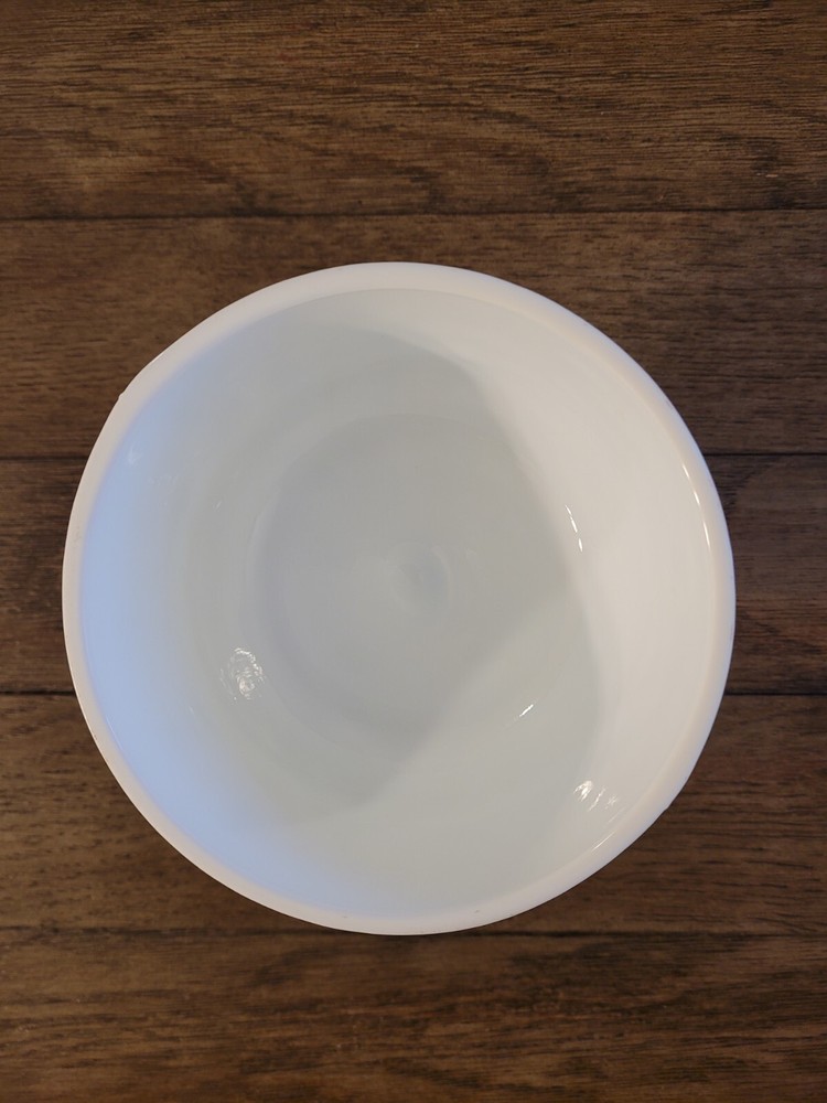 This vintage F.T.D. milk glass compote bowl features a classic white color with a leaf design, making it a charming addition to any table setting. The bowl is made of glass and has a pedestal base, measuring 5.5 inches in diameter and width. It is part of the Colony product line and is an original vintage piece, ideal for serving candy or displaying decorative items. Perfect for all occasions and is in perfect condition.
