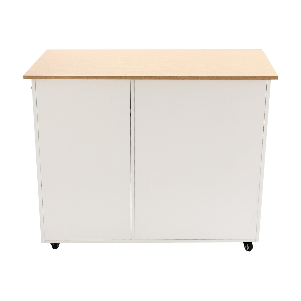 White Modern Rolling Kitchen Island Cart with Storage Drawer