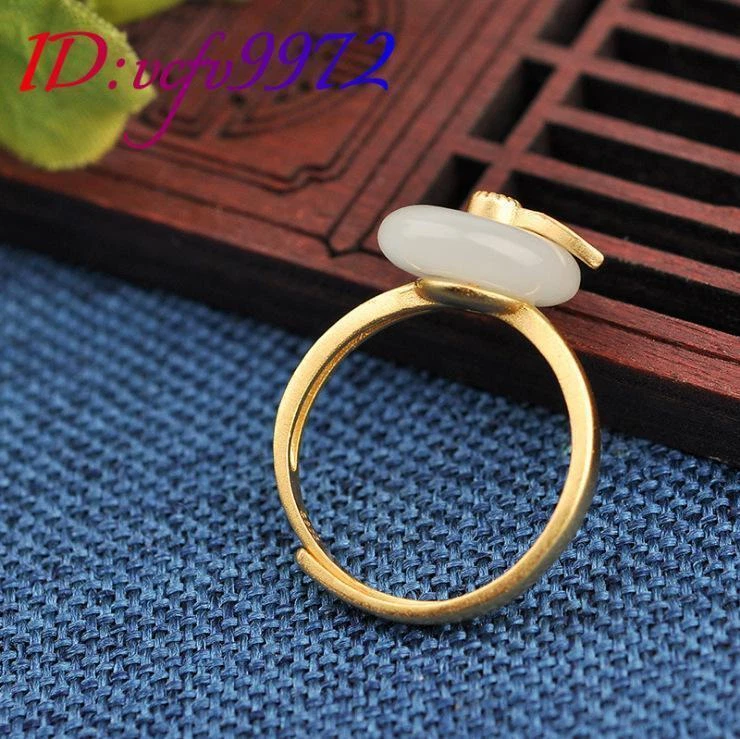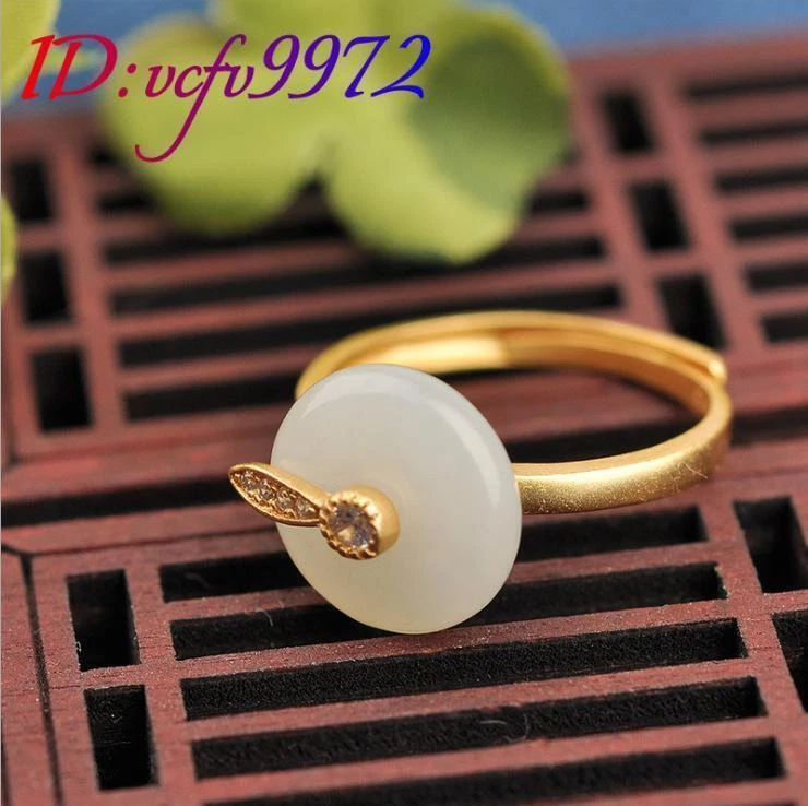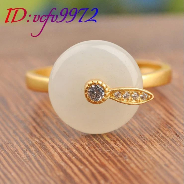 White Natural Jade Rings Real Jewelry Charm 18K Gold Plated Amulet