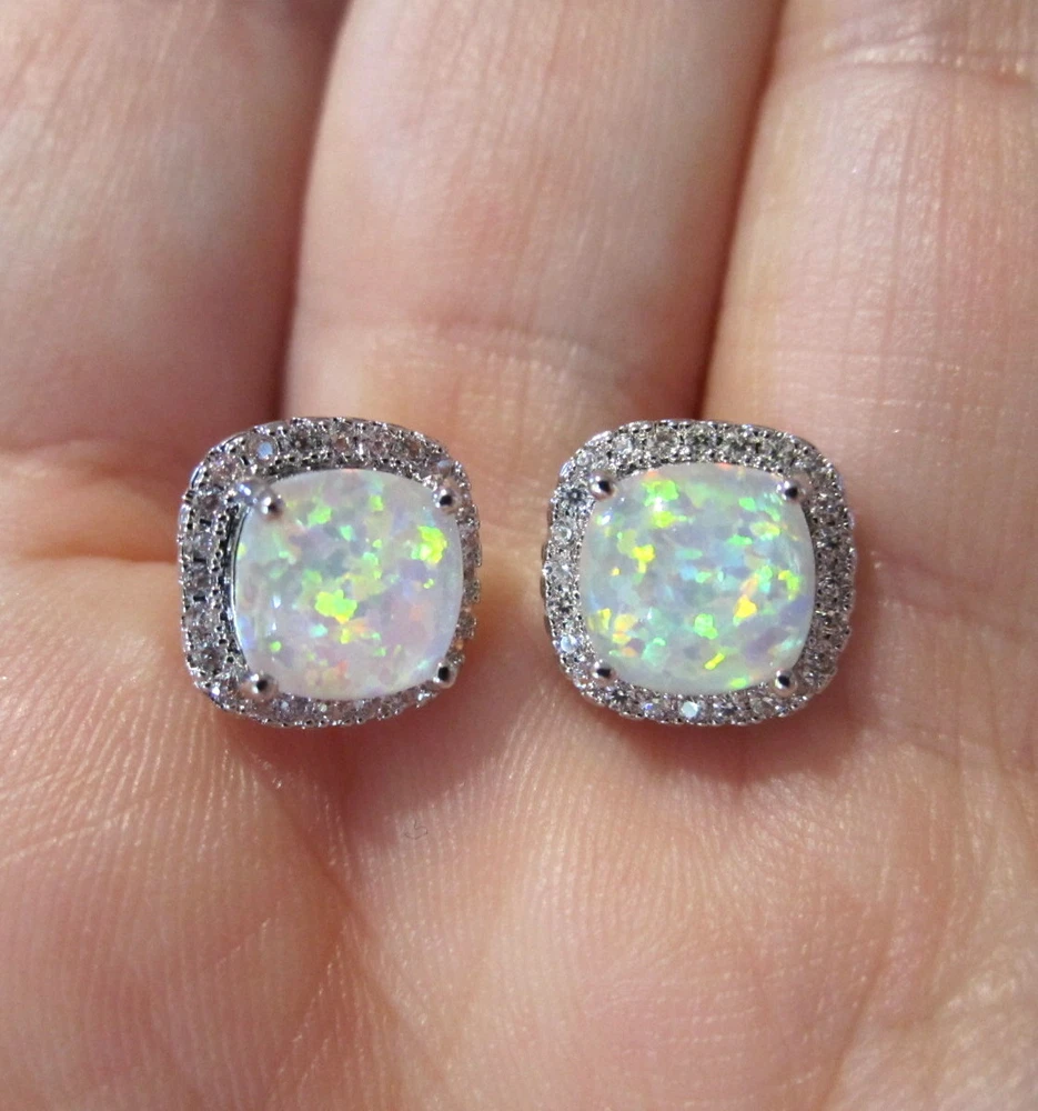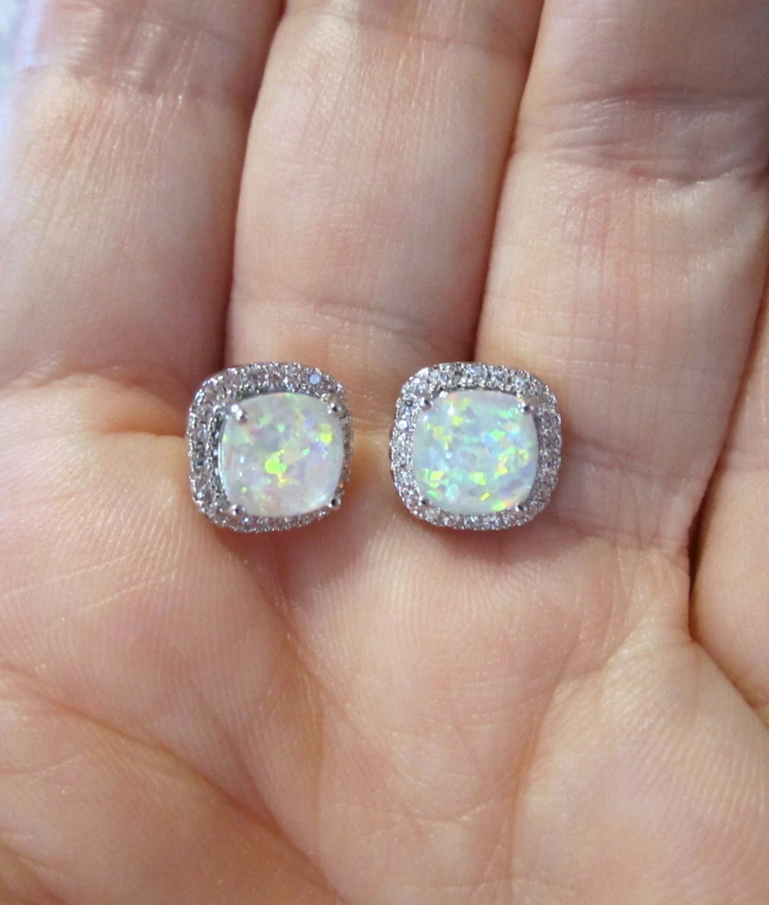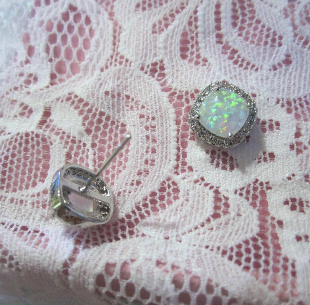 DETAILS **NOTE** Pictures do not do these justice...they are gorgeous!!! My pictures did not turn out well but I assure you these are amazing earrings! This listing is for this beautiful pair of silver & white Opal earrings. They measure approx. 10mm (3/8 inch) in diameter. The opal stone is framed with clear cubic zirconias. These are absolutely stunning and high in quality!! You will NOT be disappointed in these! Please ask any questions that you may have! FEEDBACK POLICY DUE TO A LARGE NUMBER OF BUYERS THAT NEVER RETURN FEEDBACK...I WILL ONLY GIVE IT AFTER THE BUYER DOES. WHEN THE BUYER RECEIVES THEIR ITEM AND LEAVES ME POSITIVE FEEDBACK, I PROMISE TO RETURN THE FEEDBACK TO THEM. SOMETIMES IT TAKES ME A FEW DAYS BUT I WILL GET IT TO YOU!! IF THE BUYER IS NOT HAPPY WITH SOMETHING I ASK THEM TO PLEASE CONTACT ME BEFORE LEAVING FEEDBACK AND GIVE ME THE FAIR CHANCE TO MAKE THINGS RIGHT!! I HOPE THAT MY BUYERS WILL UNDERSTAND AND I THANK YOU!! QUESTIONS Ask any question that you may have. If you are not happy with this item when you receive it.... please contact us instead of leaving a negative feedback. We are always willing to work anything out. Our customers come first and we want them to be happy. We always promise excellent customer service. A happy customer comes back!! We stand 100% behind our products and 100% guarantee all of them!! PAYMENT DETAILS USA and OUTSIDE USA: We accept PAYPAL payments. We do combine shipping on multiple items IF all items are paid within one payment. PLEASE WAIT FOR COMBINED SHIPPING INVOICE!! If you cannot pay with Paypal immediate, please let us know right away. This will keep us from bothering you with tons of invoices because we will know when to expect your payment!! Items MUST be paid for within 4 days. If not, We will relist the item and file a Non-Paying Bidder complaint. We truly hope that all transactions can be smooth and pleasant!! PLEASE understand that shipping is more than just stamps or postage. We do combine shipping on multiple items IF all items are paid within one payment. PLEASE WAIT FOR COMBINED SHIPPING INVOICE!! I try and ship items out within 24-48 hours after payment is received. I am very careful to package items extremely well which requires alot of high quality packing materials. Please also understand that no matter how fast I ship...the postal service is out of our control. Thank you! FOR RETURNS If you feel that you are not happy with an item, please CONTACT ME before leaving feedback. If the item is broken...I require return and will refund your payment in full when the item gets back to me. If you just dont want the item and choose a REFUND please understand that I cannot issue it until I have the item back in my home and it is in the EXACT shape as when it left. You will need to return the item at your own expense and refunds do not include shipping unless the item is broken or not as described. This is the only way that I can recover some of my costs that I would otherwise lose. THANK YOU!!