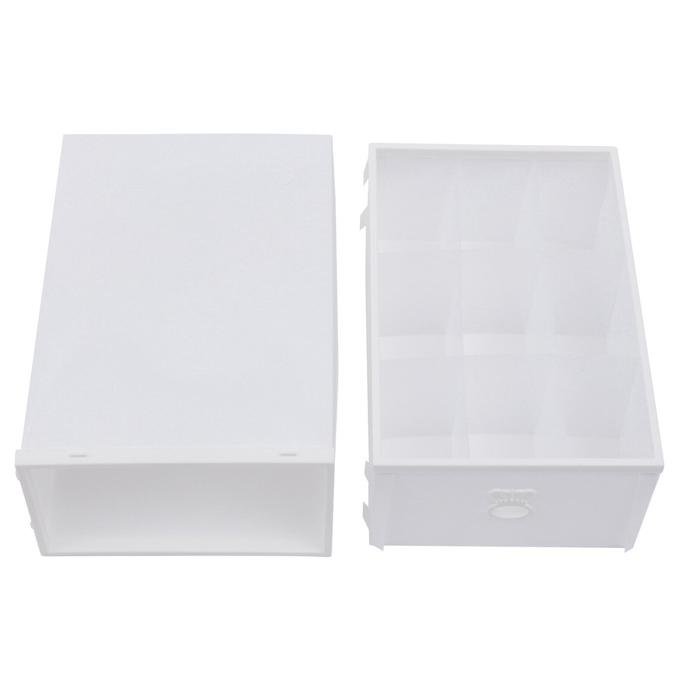 Description Beautiful living starts with organized storage. This drawer storage box features a three-box splicing design, with more space at your disposal. It features a drawer design with a smooth pull-out. The clear markers allow you to find underwear, socks, and panties faster. The thoughtful design gives you a better storage experience. Details Classification Marker: The package is equipped with different classification markers. Attaching them to the outside of the box makes it easy to find the contents at a glance. Small Compartments: Both boxes have small compartments to bring more neat storage and easier pickup. Stylish Frame: It uses the faux alabaster marble frame, which is smooth, fuss-free, instantly upgrades the entire box, and better reflects the stylishness of the room.