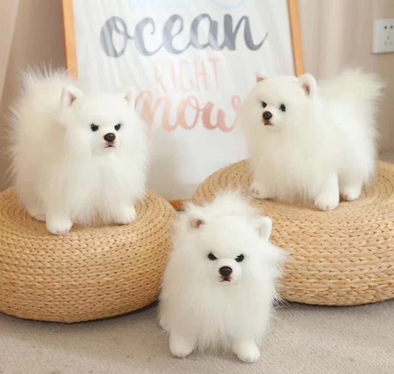 White Pomeranian Dog 9-inch Stuffed Animal Plush Toys Toddler Doll Kids Gifts