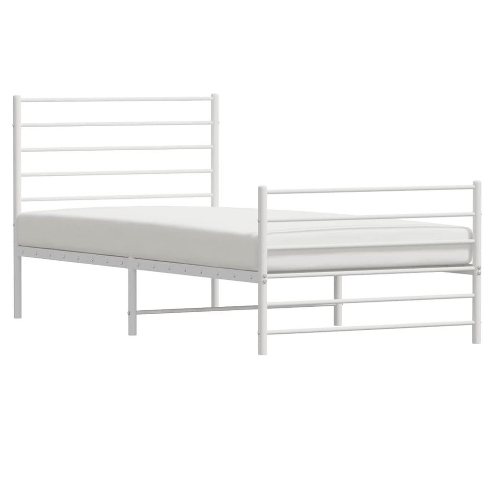 Gender: Unisex Size: Twin This stylish metal bed frame has a sleek powder-coated steel design, perfect for anyone wanting to jazz up their bedroom decor. Its modern feel coupled with durable build gives you stability while adding a minimalist touch to your space, fitting seamlessly in either traditional or contemporary settings. Modern Aesthetic: The bed frame's contemporary design adds a touch of elegance and sophistication to any bedroom, creating a peaceful spot for rest and relaxation. Durable Construction: Made from powder-coated steel, this frame is strong and resistant to wear, making sure it stays looking good and functional for years. Effortless Cleaning: The smooth finish makes maintenance a breeze; just wipe it down with a damp cloth to keep it looking fresh. Compact Size: With measurements of 39.4 in wide and 81.5 in long, this bed frame is perfect for single occupancy, making it a great option for guest rooms or smaller flats. Versatile Use: Great for reading, watching TV, or a comfy night's sleep; it's designed for maximum comfort and ease. Color: White Shape: Rectangular Material: Metal Steel Finish: Powder-Coated Indoor/Outdoor: Indoor Only Cover Included: No Room: Bedroom Maximum Number of People: 1 Dimensions: 39.4 x 81.5 x 35.4 in (W x L x H) Leg Height: 10.2 in Weight: 32.85 lbs Swings: No Delivery Contains: Bed Frame, Headboard, Footboard Assembly Required: Yes Recommended Number of People for Assembly: 2