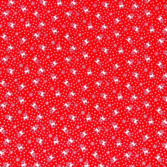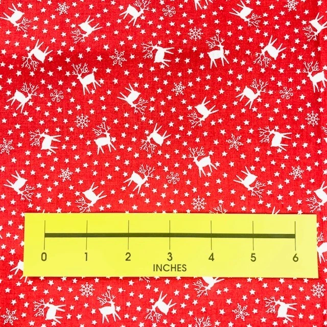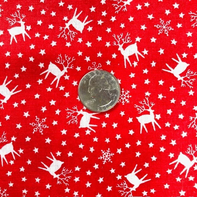 White Reindeer Stars and Snowflake silhouettes on red 100% Cotton Fabric 2.5yds