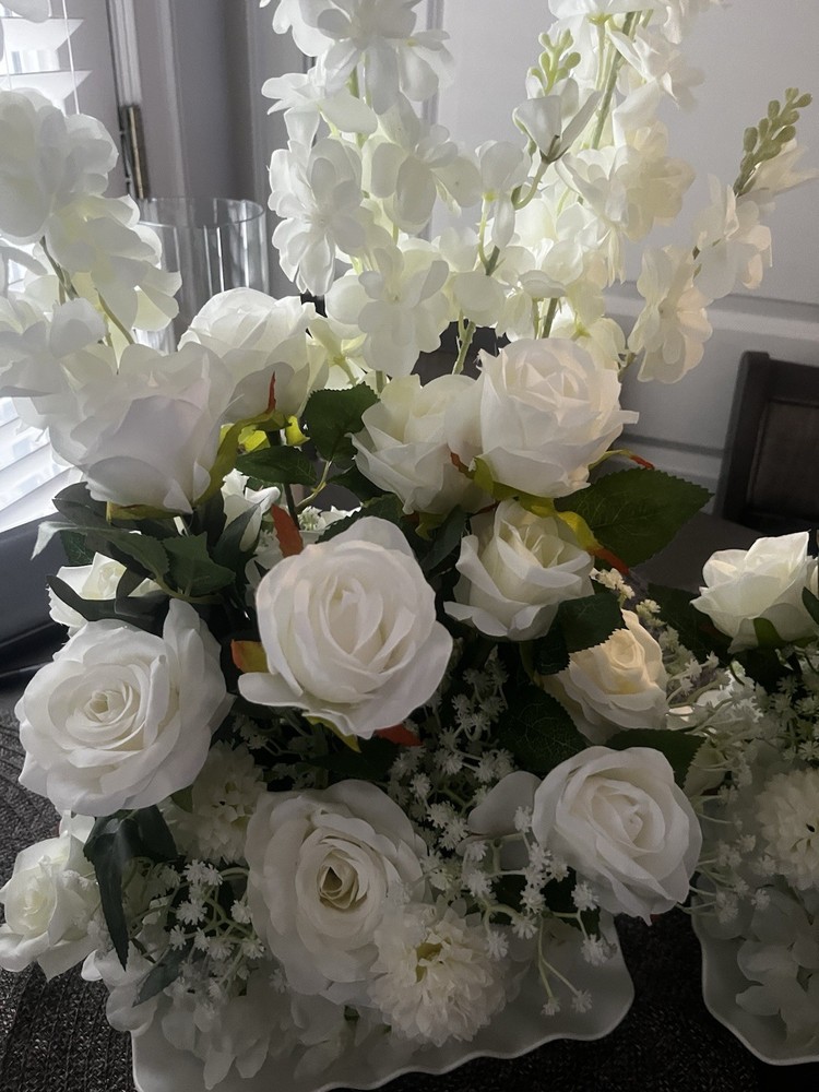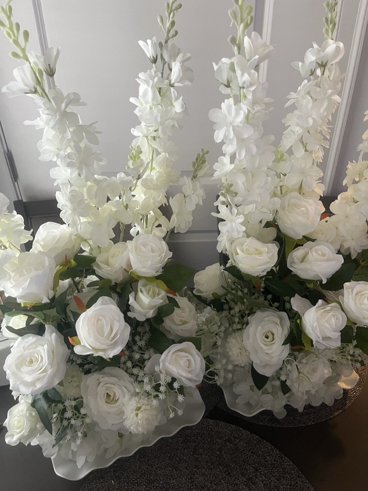 White Rose floral arrangement set of 2 about 2 ft high