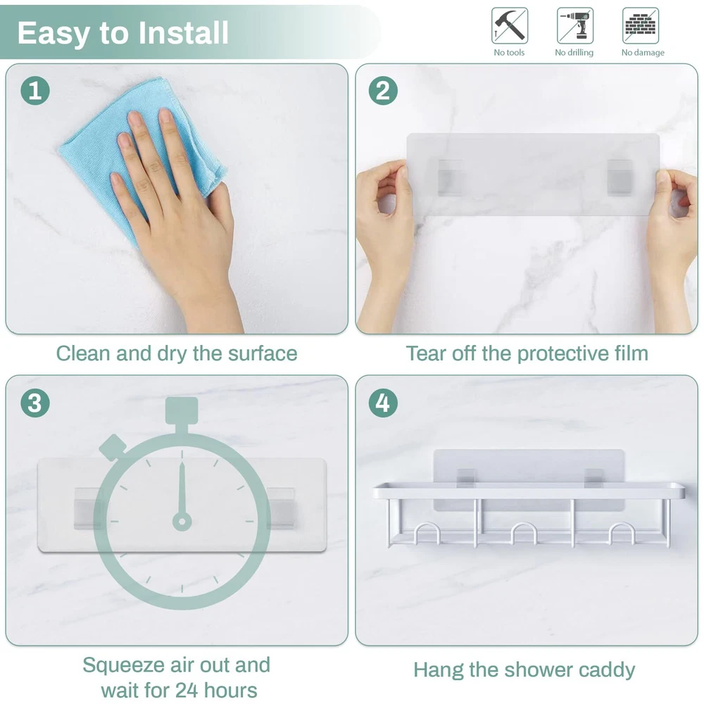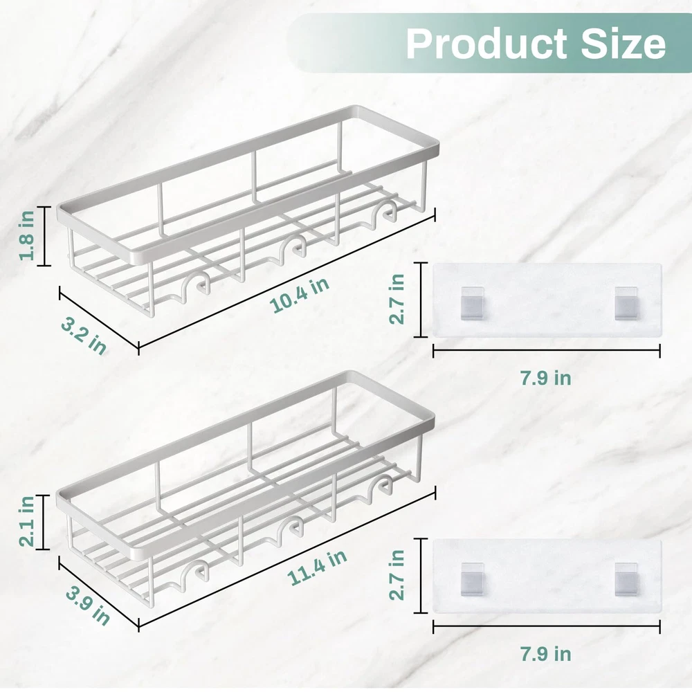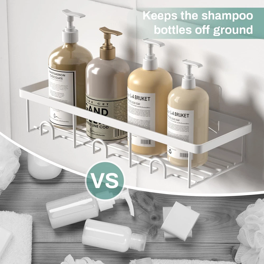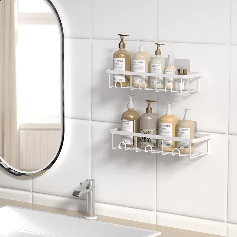 【Bathroom Organization and Storage】-- Are you still tired of shampoo bottles sitting on the floor? Bottles are always knocked over and clutter up the ground! Products all over the place but there is no storage space! Here Oasiteege shower caddy organizer offers you more space and helps you to organize the bathroom of home, college dorm, apartment, farmhouse, camper and RV. With these shower shelves for inside shower, the bathroom must haves, everything is easier for you to get! 【Easy to Install】-- These shower storage rack is quite easy to install! What you need to do is to wash the bathroom tile walls, dry the wall really good and then apply the adhesive; Make sure the air bubbles are squeezed out and wait for 24 hours!! Then hang the shower basket. No drill needed! It is not recommended for painted surfaces, plaster walls, cement walls and wallpaper walls. 【Sturdy Adhesive Shower Organizer】-- Made of carbon steel, wall mounted with sturdy adhesives, the capacity of this shower basket organizer is up to 20 lbs, which is sturdy enough to hold 17 bottles of 20.4oz shampoo. And this shower holder organizer is waterproof, rustproof and scratch-resistant. 【Aesthetic Bath Decor and Accessories】-- This bathroom organizer uses carbon steel material with surface painted into white, it is a nice contrast to the restroom accessories. You can also decorate your bathtub, kitchen, bedroom, living room, dining room or laundry room with this cute shower rack! 【2 Pack Shower Caddy Set】-- This suction shower shelf set contains 2 shower shelves to store and de-clutter a plenty of shower stuff. Make it perfect bathroom gadgets and new apartment essentials for first apartment. If You Need Extra Adhesives, You Can Find It In Oasiteege Store!