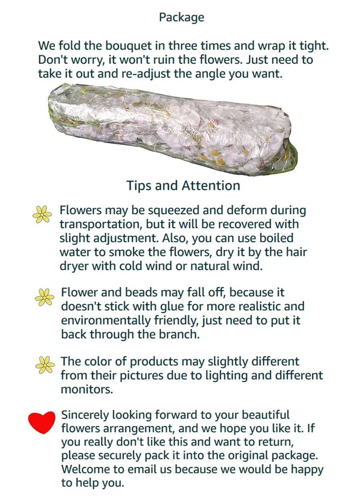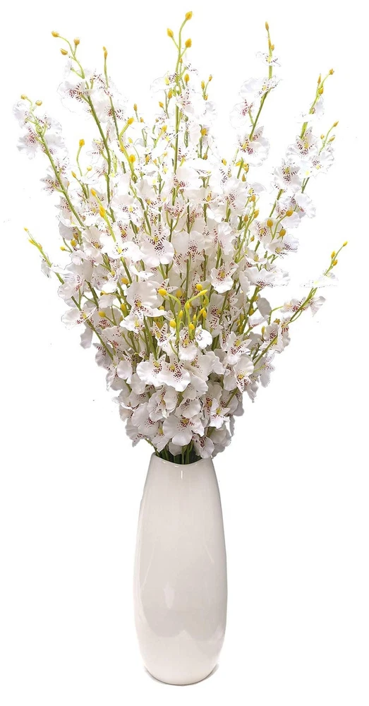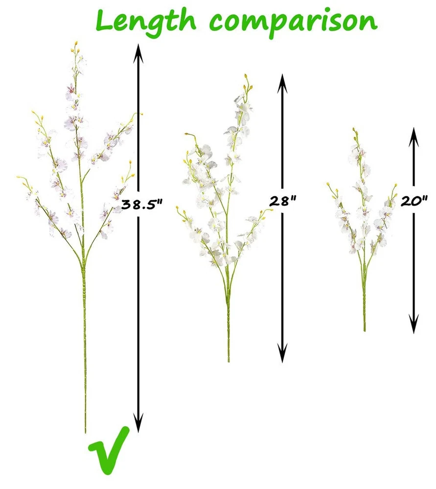 White Silk Flowers in Bulk Wholesale Artificial Orchids, 12 Pcs (Each 38.5”), for Wedding Festive Party Home Office Decoration, No Include Vase Product Details Color: White Brand: OMUYGDD MPN: white UPC: 796862872922 EAN: 0796862872922 Brand: OMUYGDD Plant or Animal Product Type: orchids Color: White Material: Silk, Plastic Product Dimensions: 6"D x 38.5"W x 8"H Brand: OMUYGDD Plant or Animal Product Type: orchids Color: White Material: Silk, Plastic Product Dimensions: 6"D x 38.5"W x 8"H Recommended Uses For Product: white flowers long stem artificial flowers for tall vase artificial orchids faux fake silk flowers in bulk wholesale artificial flowers for decoration Specific Uses For Product: Bouquet, Hotel Decor, Home Decor, Office Decor, Outdoor Decor Indoor/Outdoor Usage: Outdoor, Indoor Package Information: No vase Occasion: Mother's Day, Wedding, New Year, Graduation, Housewarming Number of Items: 12 Item Weight: 14.4 ounces Room Type: Outdoor Patio, Kitchen, Living Room, Bedroom, Dining Room Special Feature: Foldable Included Components: 12 Pcs Artificial Dancing Orchid Flowers Item Package Quantity: 1 Unit Count: 12 Count Scent: Festive, Floral Seasons: All, Winter, Autumn, Summer, Spring Manufacturer: OMUYGDD UPC: 796862872922 Item model number: white Batteries required: No Up close it is obviously artificial, but far away it looks nice. Package includes artificial dancing orchid flowers(No include vase) MaterialFlowers are made of silk. Wire wrapped with plastics is used for firmness and angle-adjustable in creating the stems Size Pack of 12 is approx 38.5" in length. Pack of 11 is approx 28" in length. Pack of 10 is approx 20" in length. The flower diameter is approx 1.5" AdjustableThe branches of the bouquet are capable of adjusting the bending angle freely.You can decide on the shape of the bouquet according to your needs DecorationOrchid means happiness and relaxing. Perfect for wedding, party, home, office, garden, hotel, festive furnishing