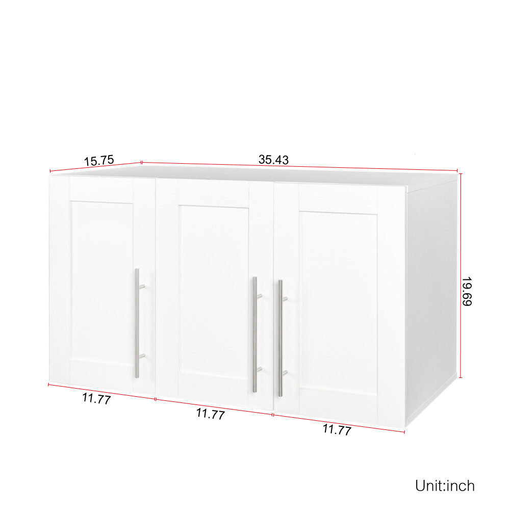 Dimensiopns:15.75 D x 35.43 W x 19.69 H Stackable Wall Mounted Storage Cabinet Product design reasonable artistic practical. it is ideal for stand-alone overhead storage or paired with other elite storage cabinets Wooden side cabinet, with movable shelves, 2 movable partitions, 6 stop height adjustment, to provide greater storage space. products are easy to clean so you can do-it-yourself! Weight:46.30 Ibs This self-storage unit can be used as a buffet table in the dining room, a TV media stand in the living room or extra storage in the home office. Install on solid brick, concrete or an installation surface equivalent to its strength. Stackable Wall Mounted Storage Cabinet, 15.75 D x 35.43 W x 19.69 H, White Generous space :15.75 inches deep, offers creative storage solutions in kitchen, laundry room, bathroom, garage and more Measures15.75 "D x 35.43" W x 19.69 "H, it is ideal for stand-alone overhead storage or paired with other elite storage cabinets Wooden side cabinet, with movable shelves, 2 movable partitions, 6 stop height adjustment, to provide greater storage space. Quality material: This wooden sideboard is made of 15mm E1 particleboard, easy to clean with a dry cloth and suitable for daily use. Versatile: This self-storage unit can be used as a buffet table in the dining room, a TV media stand in the living room or extra storage in the home office. Install on solid brick, concrete or an installation surface equivalent to its strength. Its bearing capacity should be greater than 100 kg/square meter. Sand walls, drywall, marble, glass, and steel can not be used to mount a television. Material:Material is 15mm particle bpard,back board is 3mm MDF.Made of wooden structure with melamine finish for durability and easy maintenance. Aufgrund des Lichts oder der Anzeige kann die Farbe des tatsächlichen Produkts geringfügig vom Bild abweichen.