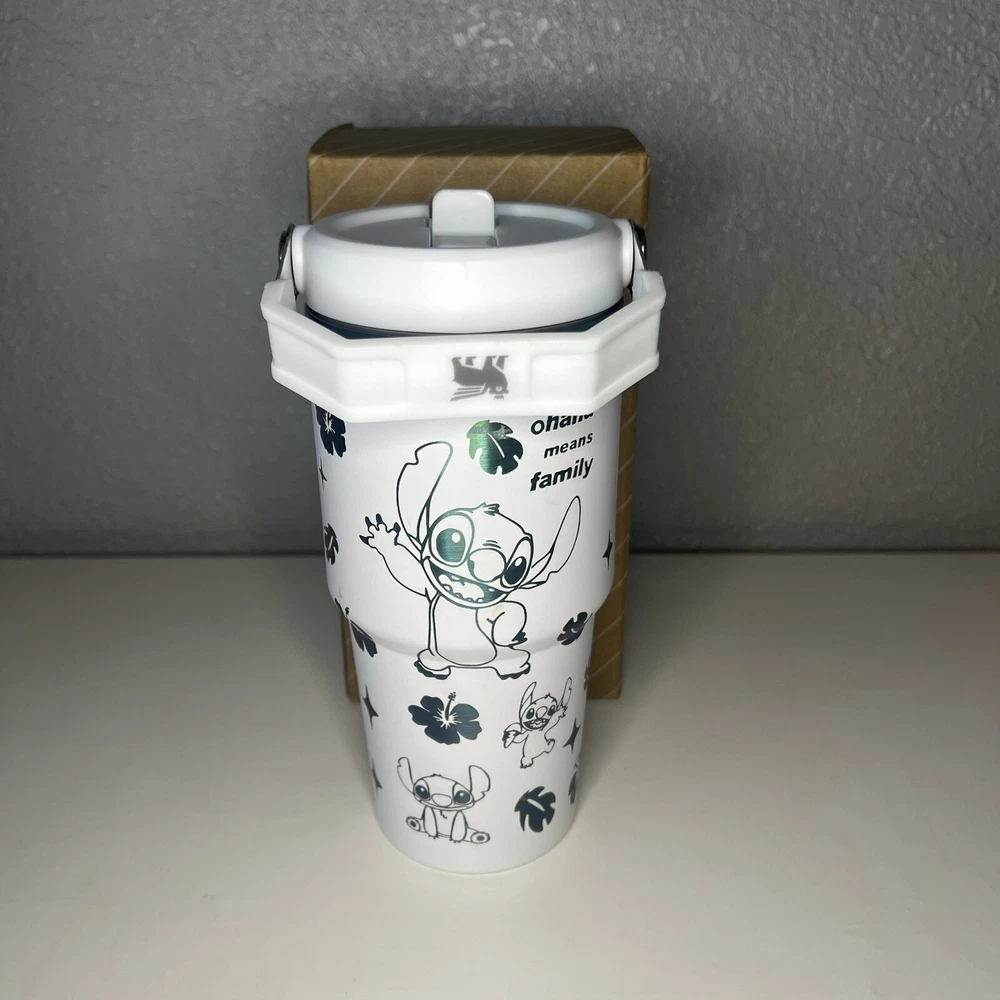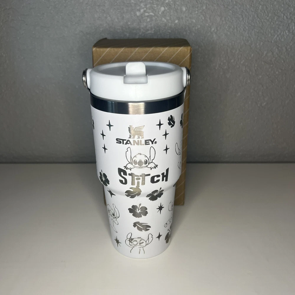 Brand new 20oz white stitch engraved Stanley tumbler Enjoy your favorite hot or cold beverage in style with this 20oz White Stitch Engraved Stanley Tumbler. Featuring the beloved cartoon characters Lilo & Stitch, this stainless steel tumbler is perfect for fans of the movie. With a lid and flip straw, this tumbler is both convenient and stylish.