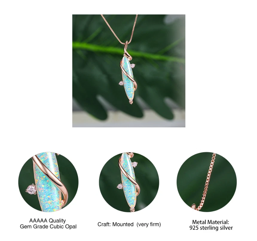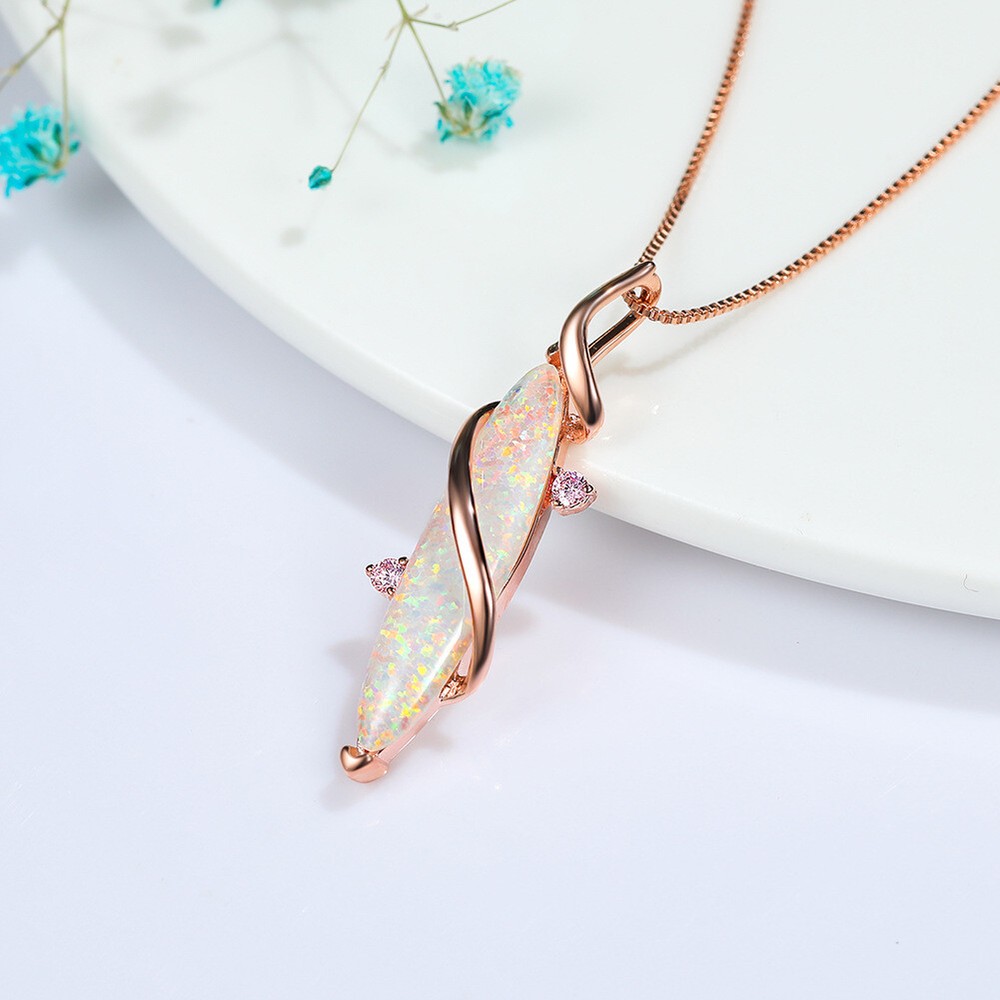 White Synth Fire Opal Marquise W/Rose Gold Over Stainless Steel- 1.6" 41mm