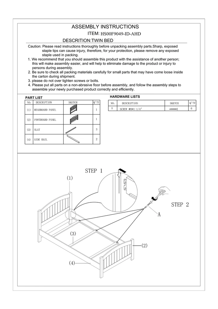 MEDIUM DENSITY FIBERBOARD Classic, Modern Elegance Youth Bedroom Listing Includes :- 1pc Twin Size Bed Only. Brand Unbranded Type Bed frame UPC Does not apply Compatible Mattress Size Does not apply Color White Frame Material Plywood White Color Twin Size Bed Youth Bedroom Furniture Vertical Lines Carved Headboard Plywood MEDIUM DENSITY FIBERBOARD Classic, Modern Elegance Youth Bedroom Listing Includes :- 1pc Twin Size Bed Only. Product Description Product Description:- This youth bedroom collection features furnishing dipped in white accented with vertical lines carved in each piece. It includes a bed frame with a footboard, night stand and chest design perfect for a traditional styled room. The nightstand also includes and open shelf located underneath the main single drawer for storing books or magazines. The chest has five drawers for spacious storage. Beauty and functionality is delivered with this collection. Product Dimensions:- Bed :- HB 47"H, FB 22"H Listing Includes :- Twin Size Bed Only. NIGHTSTAND AND CHEST IS NOT INCLUDED Simple Assembly Requires: Product Features:- •Contemporary •White Color •Vertical Lines Carved Headboard •Rubberwood •Plywood •MEDIUM DENSITY FIBERBOARD •Classic, Modern Elegance •Contemporary Style White Color Vertical Lines Carved Headboard Rubberwood Plywood Item Specifics Brand Unbranded Type Bed frame Color White Frame Material Plywood Payment [ Policy: The above tab label style can be modified in left Basic - Footer Policy section. And this area is the details contents of your policies. You can add a banner for this policy as header and add text descriptions here. The text descriptions can be different Font Size, Font Color, Style and even graphics and icons are also accepted. ] Shipping [ Shipping: This is the contents of your Shipping. You can add a banner for this Shipping as header and add text descriptions here. The text descriptions can be different Font Size, Font Color, Style and even graphics and icons are also accepted. ] Returns [ Return: This is the contents of your Return. You can add a banner for this Return as header and add text descriptions here. The text descriptions can be different Font Size, Font Color, Style and even graphics and icons are also accepted. ] Contact Us [ Contact Us: This is the contents of your Contact Us. You can add a banner for this Contact Us as header and add text descriptions here. The text descriptions can be different Font Size, Font Color, Style and even graphics and icons are also accepted. ] DESCRIPTION PAYMENT SHIPPING RETURN POLICY CONTACT US White Color Twin Size Bed Youth Bedroom Furniture Vertical Lines Carved Headboard Plywood MEDIUM DENSITY FIBERBOARD Classic, Modern Elegance Youth Bedroom Listing Includes :- 1pc Twin Size Bed Only. Product Description Product Description:- This youth bedroom collection features furnishing dipped in white accented with vertical lines carved in each piece. It includes a bed frame with a footboard, night stand and chest design perfect for a traditional styled room. The nightstand also includes and open shelf located underneath the main single drawer for storing books or magazines. The chest has five drawers for spacious storage. Beauty and functionality is delivered with this collection. Product Dimensions:- Bed :- HB 47"H, FB 22"H Listing Includes :- Twin Size Bed Only. NIGHTSTAND AND CHEST IS NOT INCLUDED Simple Assembly Requires: Product Features:- •Contemporary •White Color •Vertical Lines Carved Headboard •Rubberwood •Plywood •MEDIUM DENSITY FIBERBOARD •Classic, Modern Elegance •Contemporary Style White Color Vertical Lines Carved Headboard Rubberwood Plywood Item Specifics Brand : Unbranded Type : Bed frame Color : White Frame Material : Plywood Payment [ Policy: The above tab label style can be modified in left Basic - Footer Policy section. And this area is the details contents of your policies. You can add a banner for this policy as header and add text descriptions here. The text descriptions can be different Font Size, Font Color, Style and even graphics and icons are also accepted. ] Shipping [ Shipping: This is the contents of your Shipping. You can add a banner for this Shipping as header and add text descriptions here. The text descriptions can be different Font Size, Font Color, Style and even graphics and icons are also accepted. ] Returns [ Return: This is the contents of your Return. You can add a banner for this Return as header and add text descriptions here. The text descriptions can be different Font Size, Font Color, Style and even graphics and icons are also accepted. ] Contact Us [ Contact Us: This is the contents of your Contact Us. You can add a banner for this Contact Us as header and add text descriptions here. The text descriptions can be different Font Size, Font Color, Style and even graphics and icons are also accepted. ] All rights reserved. Shop Category Store Home Other Hot Item Queen Size Storage Bed Linen Upholstered Platform Bed with Two Drawers - Pink USD 155.56 Toddler Floor Bed Frame, Cot Bed for Boys and Girls Ages 3-6, Bear Shape Toddler USD 195.00 Full Size Captain Bed with Storage Bookcase Headboard,Captain bed with Trundle a USD 335.13 Full Size Upholstered Smart LED Bed Frame with 2 Storage Drawers and Chic Double USD 182.64 Queen Size Metal Bed Frame with Headboard Charcoal Grey USD 147.01 Delivery New List Item Queen Size Wooden Bed With All-in-One Cabinet, Shelf and Sockets, White USD 929.26 Full Size Murphy Bed with Storage Shelves and Drawers, Gray USD 1860.91 Queen Size Murphy Bed with Built-In Charging Station, Antique Grey USD 860.06 Twin Over Twin Bunk Bed with Trundle and Staircase,White(OLD SKU:LT000068AAK) USD 915.40 Queen Size Murphy Bed with Large Drawers, White USD 893.15 Help & Info Payment Policy Shipping Policy Return Policy FAQ About Us On Jun 23, 2025 at 05:35:13 PDT, seller added the following information: