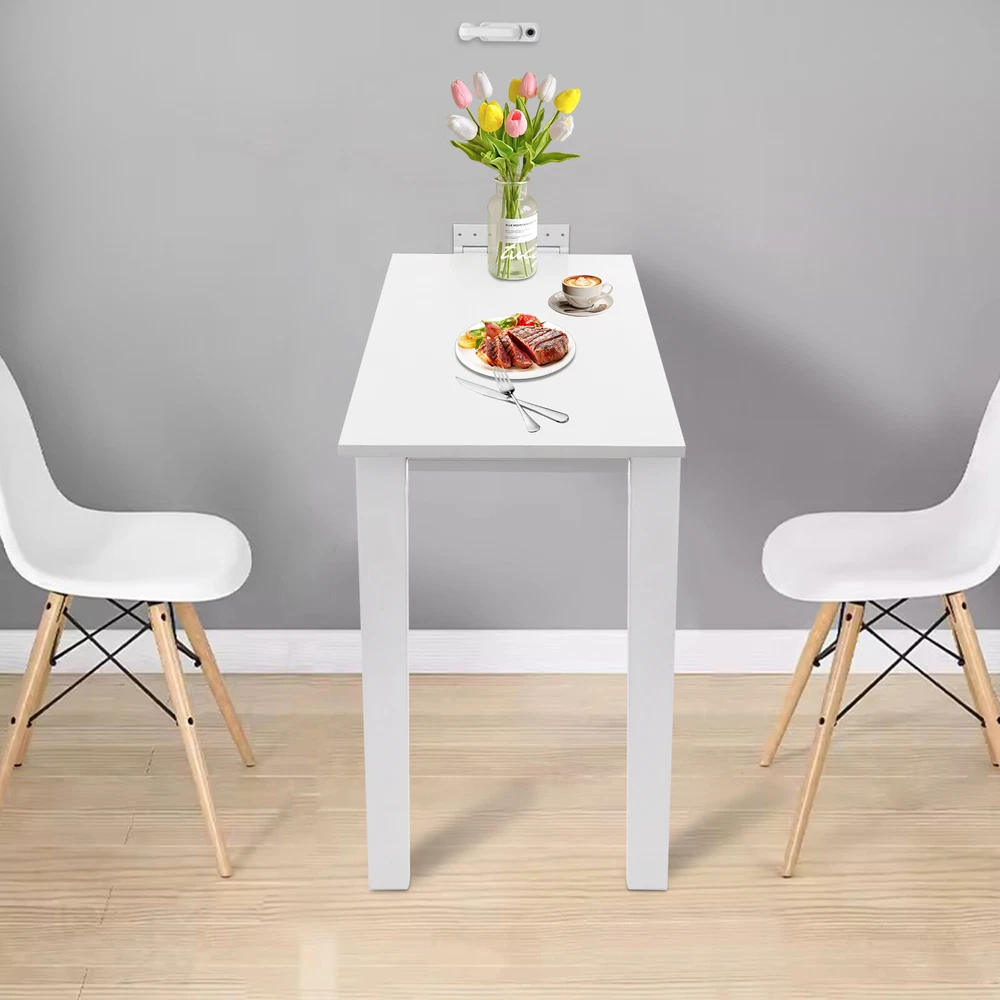 White Wall Mounted Wood Folding Dining Table Space Saver