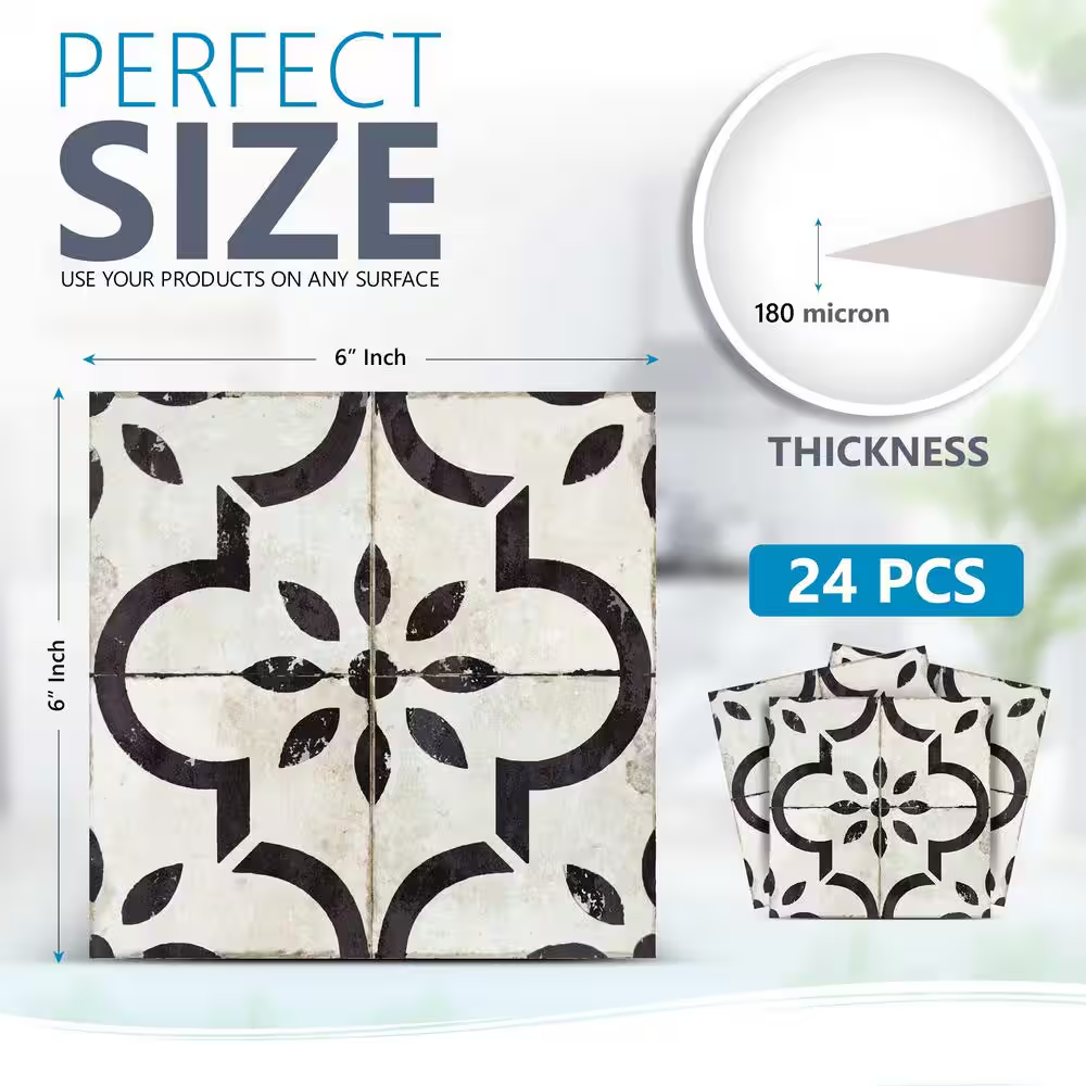These peel-and-stick tiles are a game-changer! Easy to install, super affordable, and the black-and-white arabesque pattern adds instant elegance to my kitchen backsplash. The adhesive is strong yet removable, and the waterproof vinyl makes cleaning a breeze. Arrived quickly and looks way more expensive than it is—so happy with the results! Customer service was fantastic too. Highly recommend for a stylish, hassle-free upgrade!