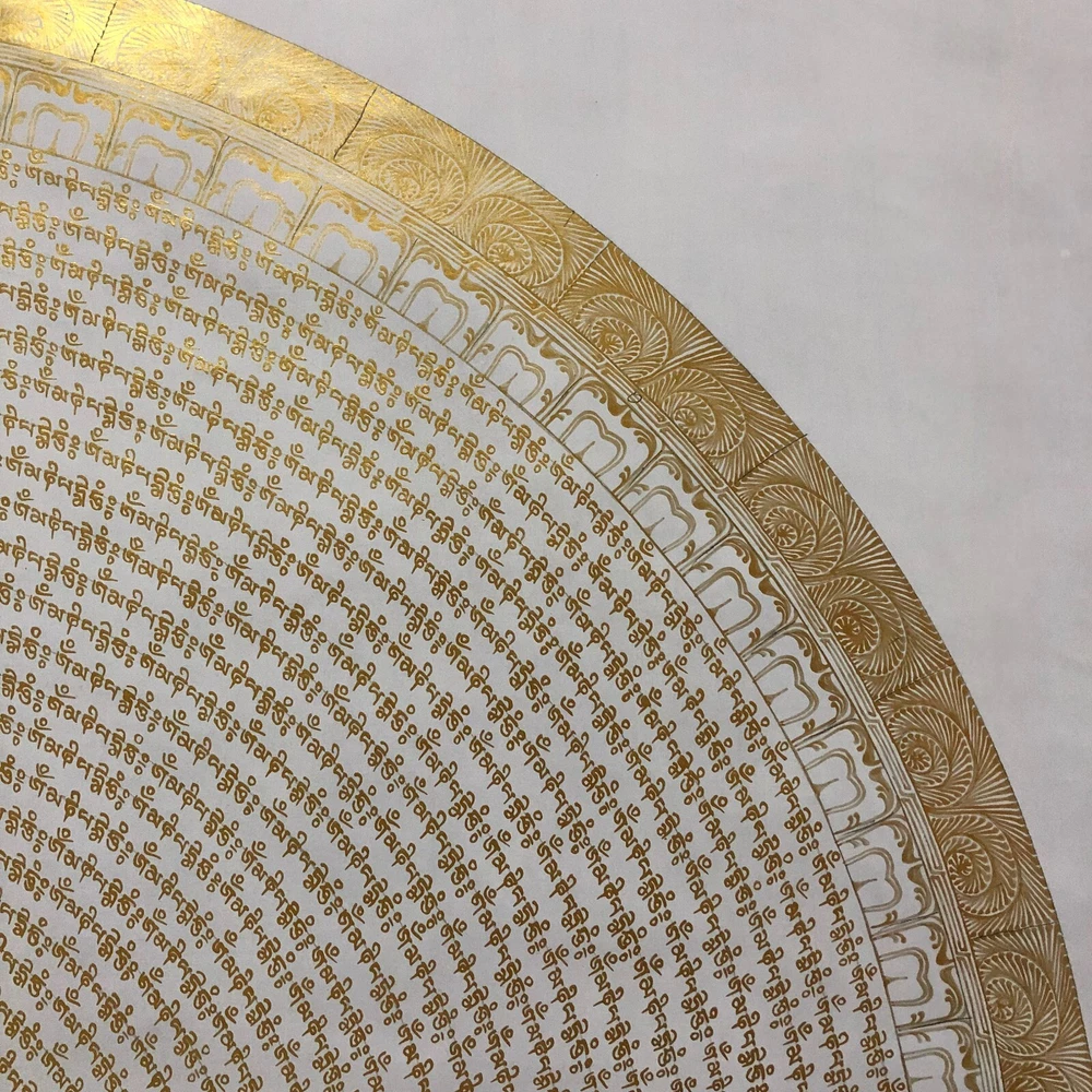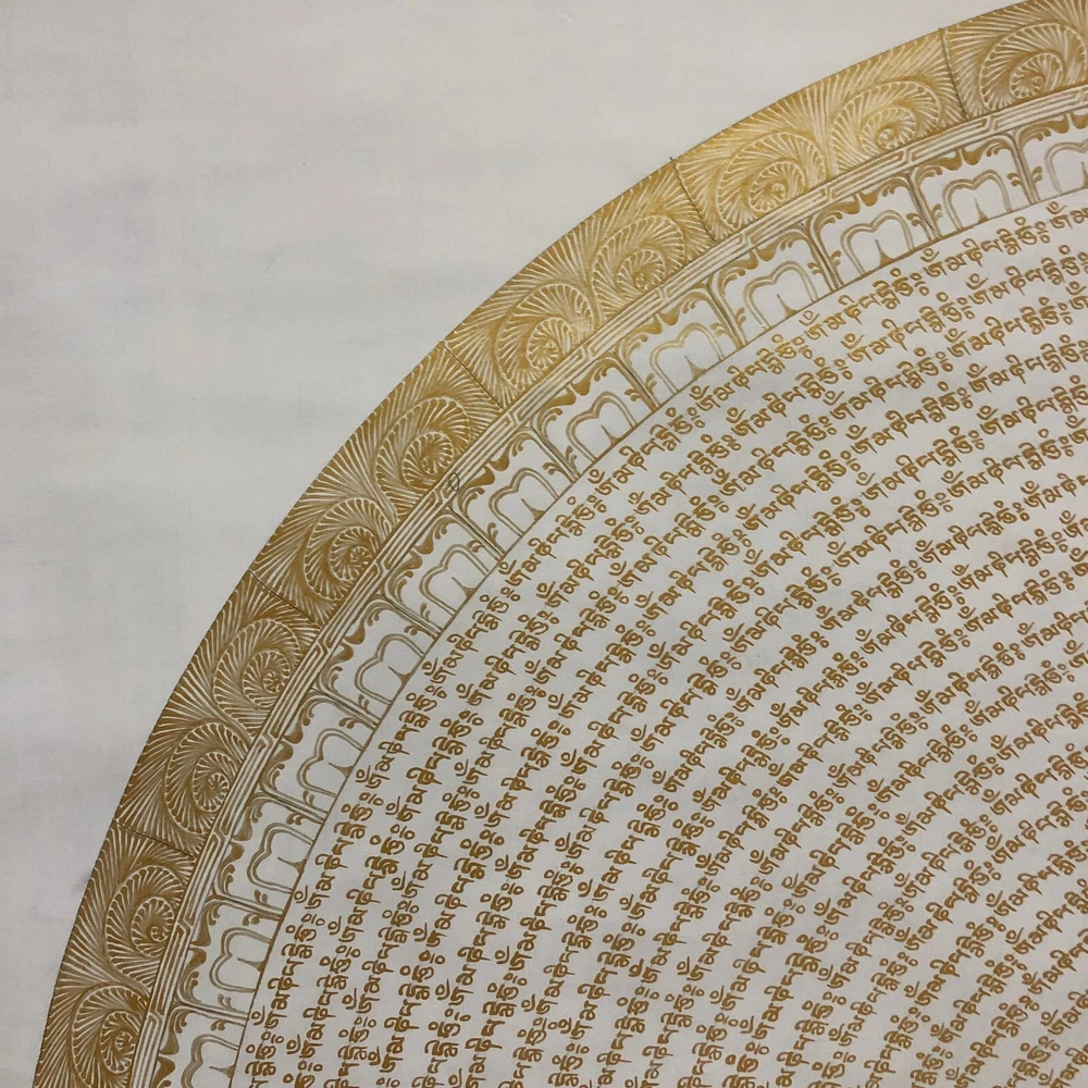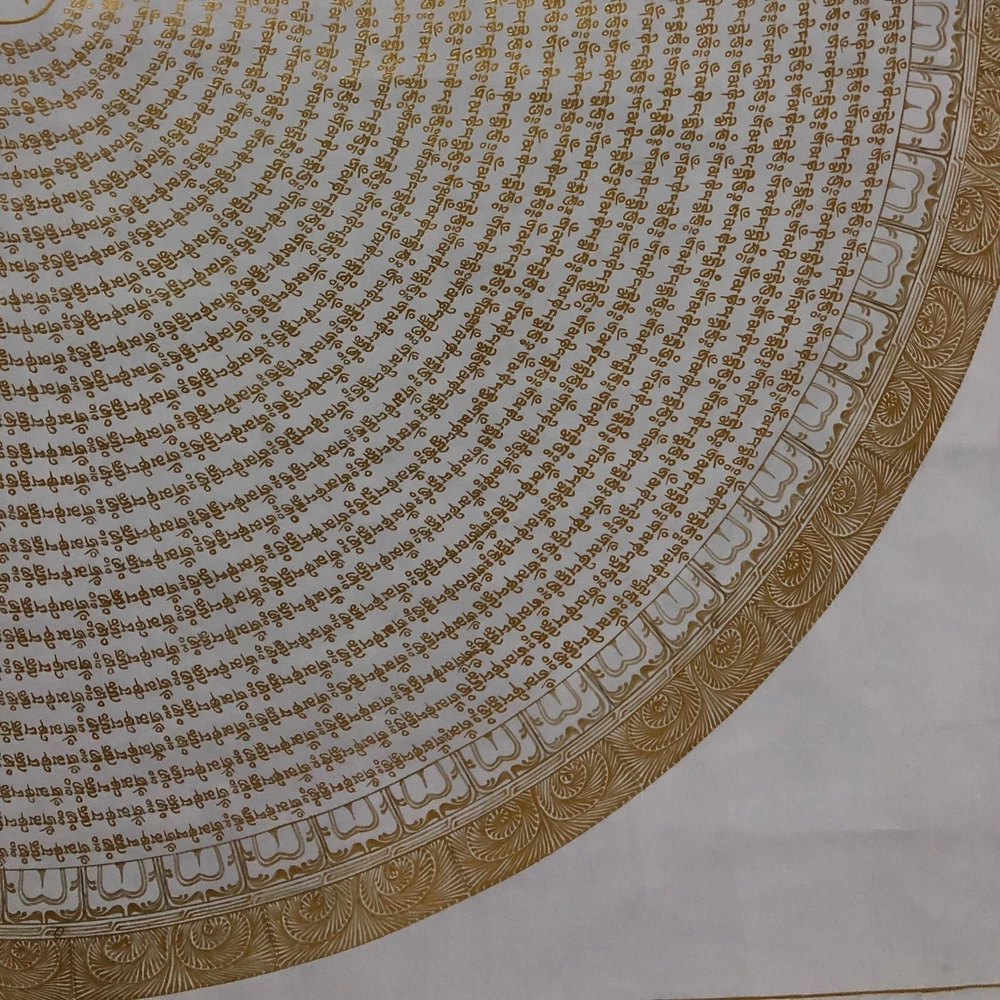 Namaste and Welcome to my Gallery!!! All of the paintings and arts in my gallery are originally handmade and hand-painted by my family members and other local artists who have been practicing their craft for over two decades. My father is Master Artists Nepal with an experience of more than four decades; you can see some of his work in this Gallery. Also you can see some of the beautiful and soulful artwork of talented local artists from Himalayas. ~Mantra Mandala Thangka~ Mantra here refers to the recitation of the quintessence words of the specific ceremonies of divinities. When the word mantra is isolated into two fragments, it uncovers the inward menning of rescuing one's intellect from conceptualization, concept and fear. "Man" in Sanskrit implies intellect, and "tra" in Sanskrit implies to ensure. [Size: 100 cm x 100 cm] Material Used: • Cotton Canvas • Natural Pigments and colors • 24k Gold leaf ~Excellent for meditation or home/office decor, ~Tibetan Yoga Wall Art ~Genuine 100% hand-painted from Himalayas Please feel free to contact me if you have any question regarding the painting.