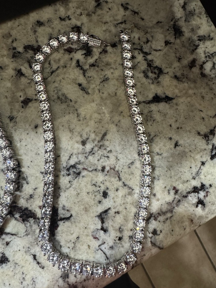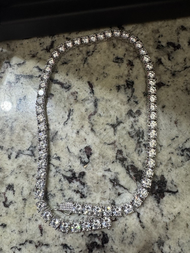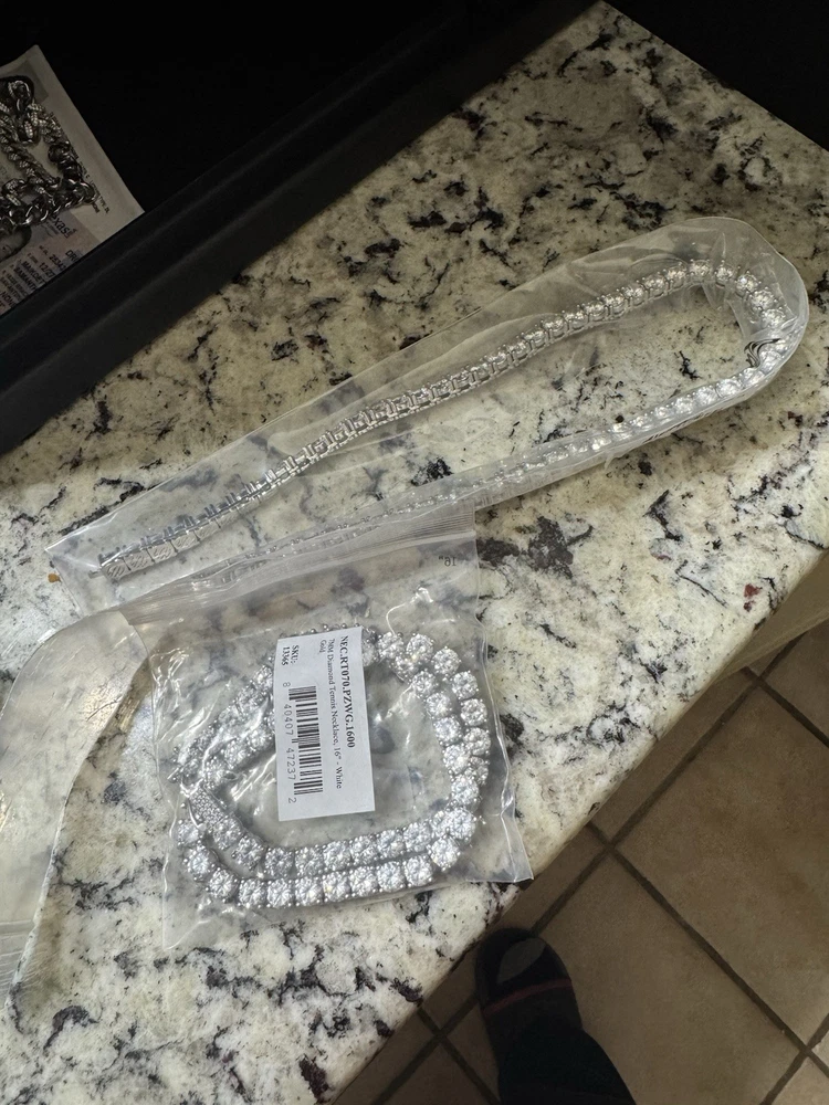 I seriously just received these 2 pieces in the mail today, 4/29 but for me the stones are too big, I tried them on and put them right back in the package. These are BRAND NEW!!! One 18 inch white gold plated tennis chain and the other is a 16 inch white gold plated chain. Both sizes are 7mm.