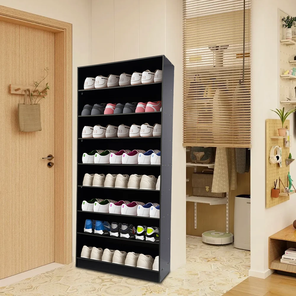 Description In our daily life, a neat and organized space can make us feel relaxed and happy. The feeling of coming home starts from entering the door and changing shoes. Look at our shoe storage cabinet made of high-quality PVC wood plastic board and mesh foam with a PVC co-extruded layer process. With its large capacity and elegant appearance, this item makes you feel warm, giving you a sense of pleasure and comfort from the moment you walk in the door. Key Features Build to Last: It is made of high-quality PVC wood plastic board and mesh foam with a PVC co-extruded layer process, which makes it strong and durable, not easy to deform, so you can use it with peace of mind in your daily life. Large Capacity: With eight tiers of shoe storage and room for 4 pairs of regular shoes per tier, this product is big enough for a family's shoe storage needs. Strong Load-bearing Capacity: The premium materials and rectangular structure allow to withstand up to 110.23lbs without collapsing, giving you a piece of mind. Shoe Storage Assistant: It cleverly integrates shoe storage into life, placing it at the doorway to store your messy shoes, making it pleasing to the eyes as soon as you open the door, and bringing you an organized lifestyle. Thoughtful Design: The open design allows you to see your shoes at a glance while still allowing for effective ventilation. You can also change the tier spacing by removing the tiers to fit different sized shoes and items. Space Saving: It utilizes vertical space wisely and has a small footprint(31.5*11.81 inches), so this cabinet won't take up much space in the room. Elegant Appearance: The sleek black finish and simple structure create a touch of elegance and casualness. It blends well with a variety of interior styles, bringing stylish functionality and aesthetics to your space. Easy to Install: A full range of accessories, a detailed English assembly diagram and simple construction allow you to install and use quickly. Hassle-free Cleaning: Thanks to its smooth surface and simple structure, you can easily clean it with water and a rag (not included). Ideal Gift : Beautiful appearance and practical function make it a nice housewarming gift for your family and friends. Practical Gloves: They make installation quicker and protect your hands from scratches. Sandpaper: It allows you to grind the surface of the product to make it polished and smooth. Mesh Foam Non-slip Pads: They stabilize that product well and won't scratch the floor. Application It can be used in the foyer, living room, porch, corridor, and other places for storing shoes, trainers, sandals, sundries, towels, flower pots, and so on. Specifications Material: PVC Wood Plastic Board, Mesh Foam Process: PVC Co-extruded Layer Style: Modern Color: White/Black Mount Type: Freestanding Product Care Instructions: Wipe with Damp Cloth Shape: Rectangular Assembly Required: Yes Number of Tiers: 8 Number of Compartments: 8 Number of Shoes Applicable Each Tier: 4 Pairs Overall Load-bearing Capacity: 50kg/110.23lbs Gross Weight: 17kg/37.48lbs Net Weight: 16kg/35.27lbs Each Compartment Size(L*H): 77*19cm/30.31*7.48in Overall Product Size: 80*30*178.7cm/31.5*11.81*70.35in Package Size: 95*46*15cm/37.4*18.11*5.91in Package Included 1*Shoe Storage Cabinet 1 Pair*Gloves 1*Sandpaper 1*English Assembly Diagram 1*Schematic Diagram of Sandpaper Grinding All Accessories for Assembly Notes Please confirm the installation dimensions before purchasing. Please note that this product does not include display items such as shoes. Please note that the number of shoes that can be stored will vary depending on the size and height of the shoes. Please wear the glove (included) when assembling. Please allow the slight color difference caused by the shooting light and 1-3cm error due to manual measurement, and make sure you do not mind before you order. Payment Delivery details Terms of sales About us Contact us Payment We accept ebay payment 。 Fees such as import duties, taxes are not included in the item price or shipping costs. These charges are the buyer's responsibility. Delivery details Shipping: 2-9 working days to: USA Terms of sales We maintain high standards of excellence and strive for hundred percent customer satisfaction. Feedback is very important to us. We hope that you contact us immediately before you give neutral or negative feedback, so that we can address your concerns. It is impossible to address issues if we do not know about them! About us Your satis faction is our ultimate goal. We work hard to earn your trust and future business. Our certified technicians have tested each item before shipping. The unit comes with 1 year limited warranty on all manufacturing defects. a) If you receive a defective item, you may return it or ask for a discount. Please contact us within 14 days after you receive the package. b) What you returned must be intact and in its original packaging as re? u. Customer is responsible for shipping costs of the returned item. c) We will cover the cost of shipping back t with the shipping rate indicated in the registration page. We will send you a new unit or refund the full payment you paid. Thank you. Contact us Business Hour Business Hour: Monday To Friday: 8:30 AM to 5:00 PM (Beijing China time) Due to time zones, our reply to your questions may not be immediately. But within above working time, we will reply your email within 24 hours. If it's non-workdays, please kindly be patient and wait till Monday. Please contact us with ebay message. Please feel free to contact us if you have any questions. Monday To Friday: 8:30 AM to 5:00 PM (Beijing China time) Due to time zones, our reply to your questions may not be immediately. But within above working time, we will reply your email within 24 hours. If it's non-workdays, please kindly be patient and wait till Monday. Please contact us with ebay message. Please feel free to contact us if you have any questions. Brand Unbranded Item Height 70.3
