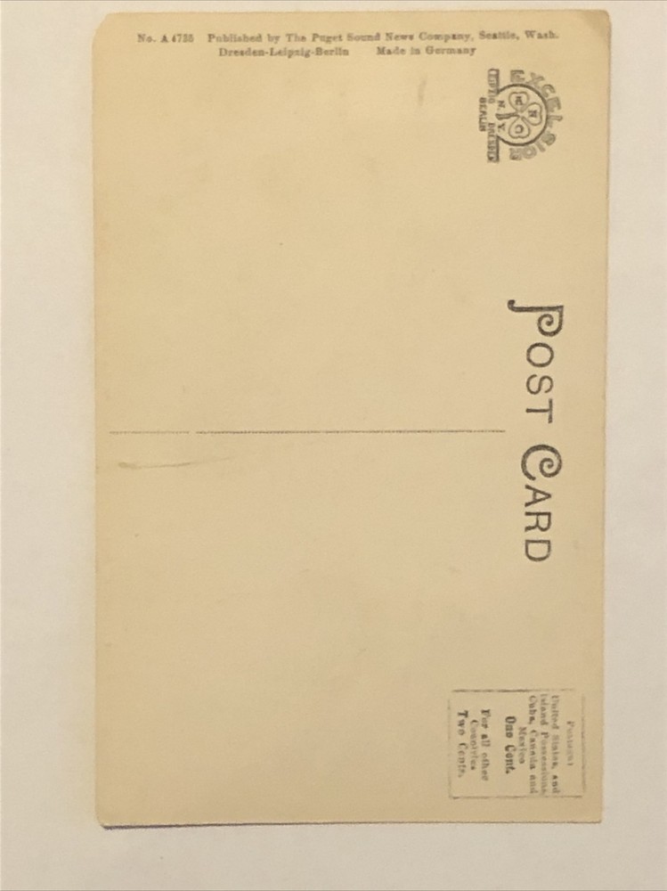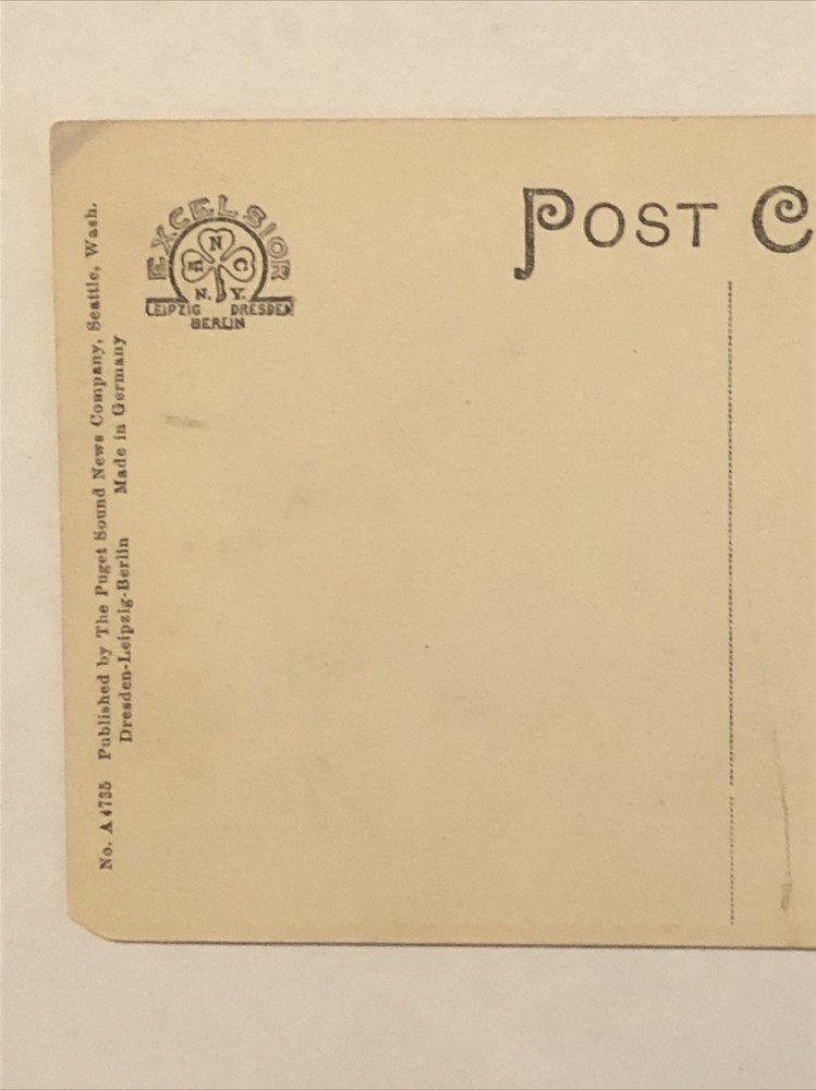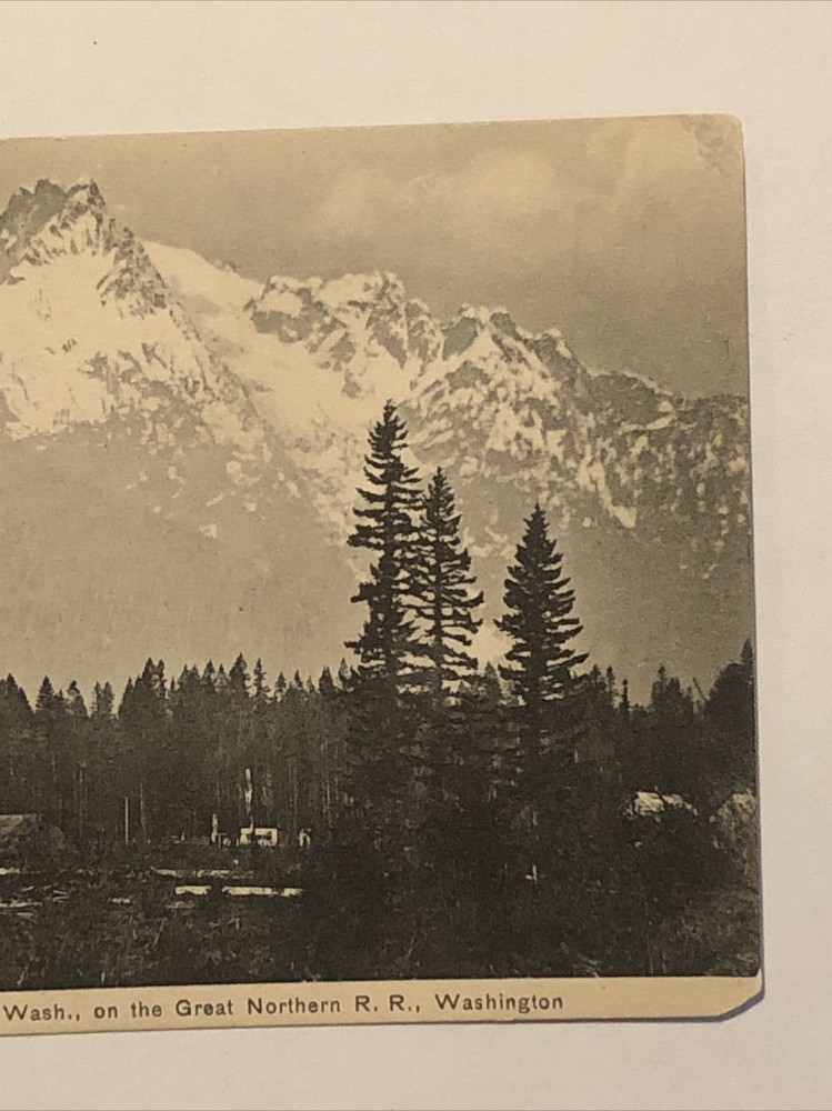 This stunning postcard features the breathtaking Whitehorse Mountain and the Great Northern Railroad passing through Darrington, WA. The lithograph print captures the stunning landscape, transportation, and city/town theme. The postcard is standard size (5.5 x 3.5 in), and it is an original piece from the Puget Sound News Company, manufactured in Germany during the early 1900s. The postcard is unposted and in good condition. Add this unique postcard to your collection today!