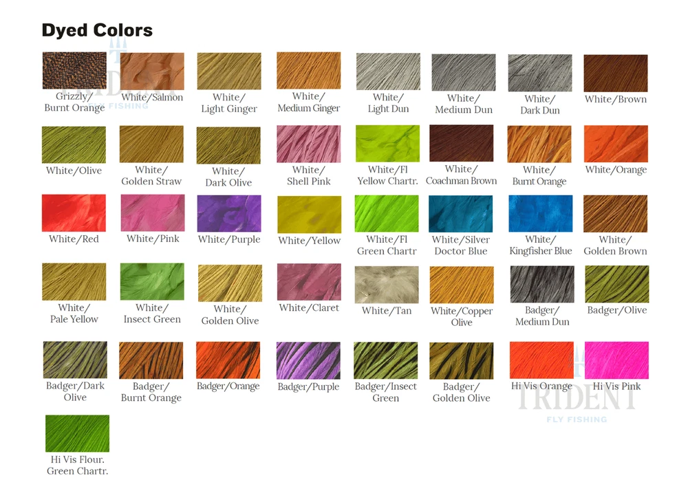 Whiting Dry Fly Hackle Full Saddle If you’re a dry fly enthusiast, Whiting’s Dry Fly Hackle Full Saddle has everything that you need to tie the perfect dry fly for years. Tying solid dry flies starts with using quality hackle, and what you find in Whiting’s Dry Fly Hackle Saddle is some of the best on the market. The feathers on these saddles are long with great barb density and have stems that are supple and super easy to wrap. Whiting breeds these roosters in a range of different colors and produces them in a few different quality grades, allowing you to dial in your flies exactly how you like. Maintaining the quality that Whiting is known for, these saddles are some of the best on the market and you can count on them to tie all of your dry fly needs for years to come. Uses First and foremost, Whiting’s Dry Fly Hackle Saddle is an excellent choice for the tier looking to whip up some dry flies. These feathers are nice and long with great barb density, allowing you to tie anything from parachutes and classic Catskill patterns to flies like the Stimulator and Elk Hair Caddis. And although these feathers are bred with the dry fly angler in mind, you’ll also find plenty of great feathers to use on fresh and saltwater streamers–whether you’re looking for long hackles to add to a Hollow Fleye or something nice and webby to palmer a Wooly Bugger, you’ll find something to use on the Dry Fly Hackle Full Saddle. Comparisons When it comes to an alternative to Whiting’s Full Dry Fly Saddle, there isn’t really anything out there that offers exactly the same quality. Sure, Keough’s Full Grizzly Saddle will work fine if you’re exclusively looking to use the color grizzly, but you won’t get the quality and consistency found from Whiting. Another option would be Whiting’s Dry Fly Hackle Half Saddle. These half saddles are exactly the same as Whiting’s Dry Fly Hackle Full Saddle but come packaged as a half saddle–this makes them a good choice for anyone who doesn’t want to invest in a full saddle, but the serious dry fly angler, it’s probably best to go with Whiting’s Dry Fly Hackle Full Saddle Whiting dry fly saddles are graded based on the approximate number of flies each pelt will tie. The grade does not, as is sometimes thought, denote hook sizes of the hackle. The following steps are carried out to determine the number of flies each pelt will provide. The approximate number of usable dry fly tying feathers is counted for both sides of the pelt. (Example: a 95 count on the left side and a 100 count on the right side total 195 usable tying feathers). The average hackle length is then measured. (Example: a pelt has an average hackle length of 8 inches). The tying sizes of the feathers are determined. Most saddles have two predominant sizes, with some hackle on either side of the predominant sizes. The total number of flies per pelt is calculated. (An 8-inch feather that is size 14” will hackle four flies; 195 feathers multiplied by four flies equals a minimum of 780 flies.) The saddle pelts are then placed in their appropriate grade based on the minimum number of flies each pelt will tie. Bronze - will tie a minimum of 500 flies Silver - will tie a minimum of 800 flies Gold - will tie a minimum of 1,100 flies Platinum - will tie a minimum of 1,500 flies Half Saddle Pelts will tie approximately ½ of these quantities Quarter Saddle Pelts will tie approximately ¼ of these quantities Whiting Dry Fly Hackle Full Saddle If you’re a dry fly enthusiast, Whiting’s Dry Fly Hackle Full Saddle has everything that you need to tie the perfect dry fly for years. Tying solid dry flies starts with using quality hackle, and what you find in Whiting’s Dry Fly Hackle Saddle is some of the best on the market. The feathers on these saddles are long with great barb density and have stems that are supple and super easy to wrap. Whiting breeds these roosters in a range of different colors and produces them in a few different quality grades, allowing you to dial in your flies exactly how you like. Maintaining the quality that Whiting is known for, these saddles are some of the best on the market and you can count on them to tie all of your dry fly needs for years to come. Uses First and foremost, Whiting’s Dry Fly Hackle Saddle is an excellent choice for the tier looking to whip up some dry flies. These feathers are nice and long with great barb density, allowing you to tie anything from parachutes and classic Catskill patterns to flies like the Stimulator and Elk Hair Caddis. And although these feathers are bred with the dry fly angler in mind, you’ll also find plenty of great feathers to use on fresh and saltwater streamers–whether you’re looking for long hackles to add to a Hollow Fleye or something nice and webby to palmer a Wooly Bugger, you’ll find something to use on the Dry Fly Hackle Full Saddle. Comparisons When it comes to an alternative to Whiting’s Full Dry Fly Saddle, there isn’t really anything out there that offers exactly the same quality. Sure, Keough’s Full Grizzly Saddle will work fine if you’re exclusively looking to use the color grizzly, but you won’t get the quality and consistency found from Whiting. Another option would be Whiting’s Dry Fly Hackle Half Saddle. These half saddles are exactly the same as Whiting’s Dry Fly Hackle Full Saddle but come packaged as a half saddle–this makes them a good choice for anyone who doesn’t want to invest in a full saddle, but the serious dry fly angler, it’s probably best to go with Whiting’s Dry Fly Hackle Full Saddle Whiting dry fly saddles are graded based on the approximate number of flies each pelt will tie. The grade does not, as is sometimes thought, denote hook sizes of the hackle. The following steps are carried out to determine the number of flies each pelt will provide. The approximate number of usable dry fly tying feathers is counted for both sides of the pelt. (Example: a 9