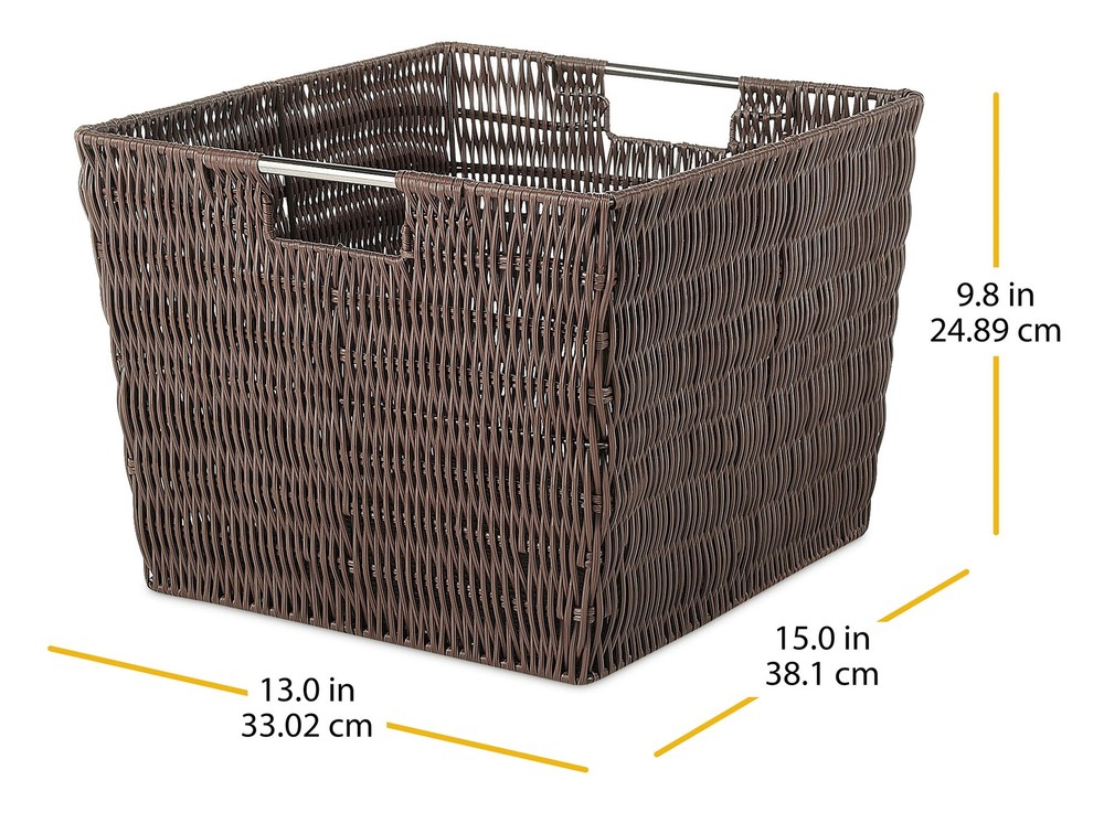 Whitmor's Rattique® Storage Totes offer a stylish way to organize almost any space in your home or office. These totes look like rattan but are made of a durable easy-to-clean Rattique® woven plastic. The chromed metal frame has built-in stainless steel handles for easy access and carrying. Easy to care for, just wipe with a clean damp cloth to keep it looking as good as new for years to come. Dimensions: 13.0 L x 15.0 W x 9.8 H inches. About this item Whitmor Rattique Storage Tote Basket - Java Storage containers with built-in stainless steel handles for easy transport Great for clothing, bath & beauty products, toys, school supplies, and more Perfect-sized baskets to tuck away in closets, storage cubes, or on a shelf for extra storage Dimensions: 13.0 L x 15.0 W x 9.8 H inches Whitmor's versatile storage solution to organize any space in your home or office Made of a durable metal frame and a handwoven polyethylene plastic strapping Easy to care for, just wipe with a clean damp cloth to keep it looking as good as new for years to come Style #6500-1715-JAVA, Whitmor Rattique Storage Tote Basket - Java On Jul 3, 2025 at 00:08:40 PDT, seller added the following information: