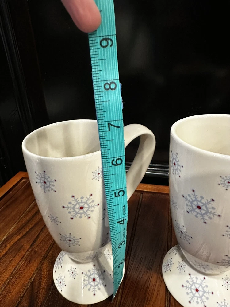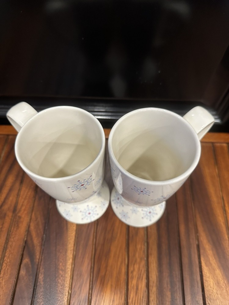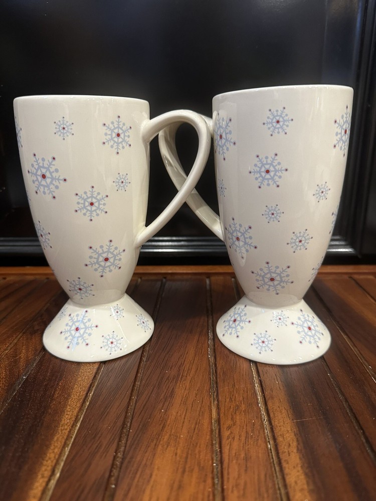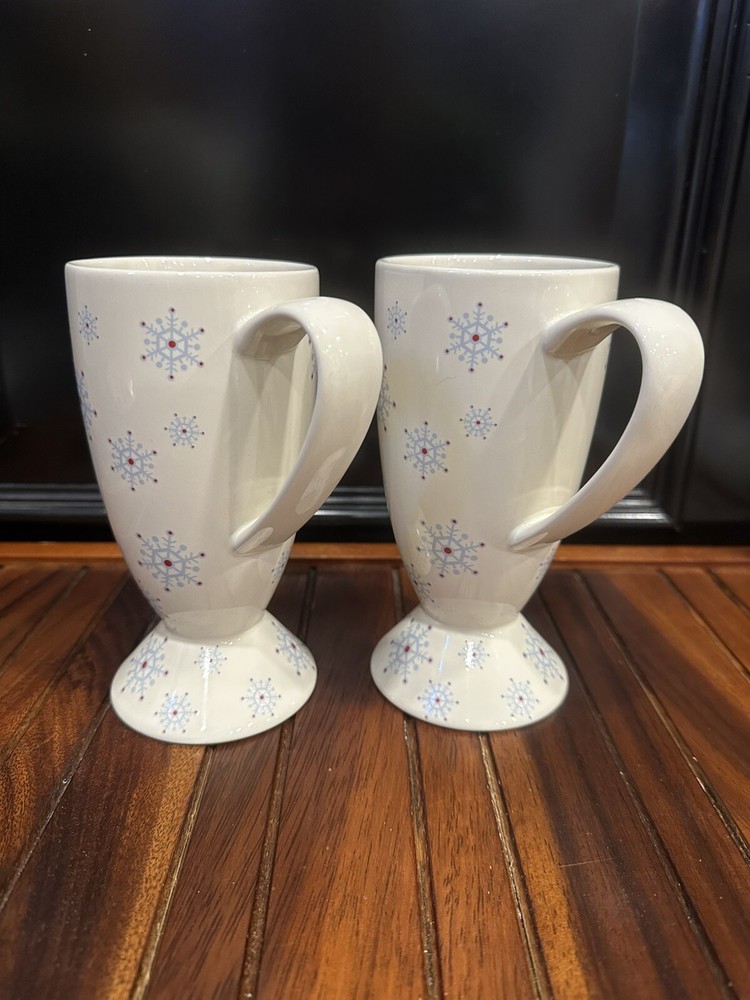 Whittard of Chelsea Fine China Cocoa Coffee Mug Blue Snowflake Holiday 2004. This mug set is 6-1/4” tall and they are in MINT condition, no chips or cracks. 2-1078-4-2/25’
