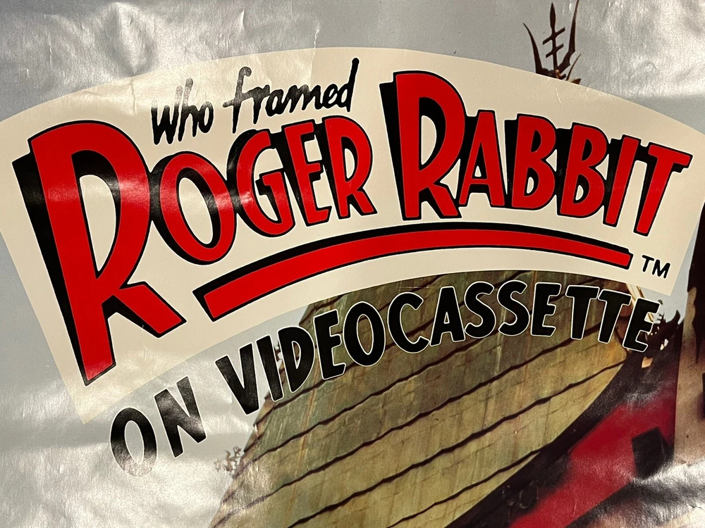 Who Framed Roger Rabbit 1987 Rare Life Sized Vintage Movie Poster Videocasette Mann's Chinese Theater Height:76” Width:26" In greath shape but some minor flaws from storage.