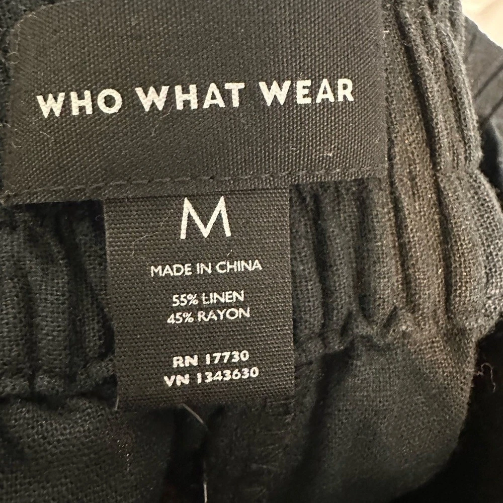 Brand: WHO WHAT WEAR Size Type: Regular Size: M Color: Black Type: Pants Features: Belted Leg Style: Straight Material: Linen Style: Ankle Department: Women
