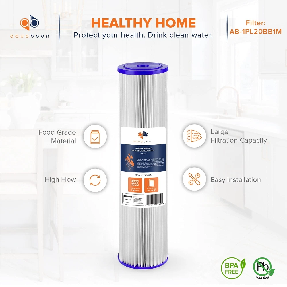Superior 1 Micron Filtration: Our 1 micron pleated water filter ensures your home enjoys clean filtered water by trapping even the finest particles. From sand to rust, whole house filter captures them all, providing crystal water without contaminants . Long-Lasting Water Purity: Say goodbye to frequent water filter replacements. ’s 20-inch sediment filter offers an extended lifespan of 4-6 months(depending on water quality), giving you consistent, high-quality filtration for longer. High-Performance Filtration for Any Source: Whether municipal or well water, sediment water filter cartridge protects plumbing and appliances from sediment buildup, offering optimal protection and prolonging the lifespan of entire water filter system. Consistent Water Pressure: Our 20 inch water filter delivers a smooth, uninterrupted water flow. The large filtration area prevents pressure drops inside whole home water filtration system, ensuring a steady supply of water without compromising flow rate. Effortless Maintenance: Built for durability, this washable water filter cartridge reduces the need for replacements. Well filter cartridge is easy to clean and maintain, allowing you to enjoy easy operation and reduced maintenance expenses over time. Versatile Filtration Solution: From residential homes to commercial spaces, 1 micron water filter 20 x 4.5 cartridge fits perfectly into 20-inch water filter housings. Its ideal choice for both whole home water filtration and pre-treatment processes. Protects Downstream Water Filters: This sediment filter not only purifies water but also enhances the efficiency of downstream house water filters. By capturing larger particles first, it ensures other water filters cartridges work more efficiently. Built for Tough Conditions: Crafted from high-quality non-woven polyester, pleated water filter replacement cartridge is designed to withstand challenging conditions. Whole house filter ensures reliable performance even in demanding environments. Universal Whole House Water Filter Cartridge Fit: Compatible With American Plumber 155184-51, W5CPHD, Ametek CP5-BB, AquaPure AP810-2, Culligan 155184, CP5-BB, Dupont HDC3001, OmniFilter RS15, Hydronix SPC-45-2001, SPC-45-2005, Keystone GPC5. Plug and Play Excellence: Compatible With Liquatec SPF-45-1005, SPF-45-2005, Neo-Pure PS-45097-05, PS-45200-01, Pelican PBBB-P20-5, PBB-P20-1, PBB-P20-5, Pentek 255490-43, ECP1-20BB, ECP5-20BB, ECP5-BB, Watts FM-BB-20-5, PWPL20BBM5, WPC1FF20, etc.