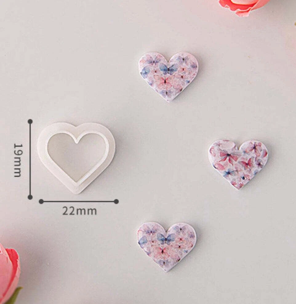 Size: Please refer to photo! For best results please use a tile, acrylic or glass sheet to avoid clay getting stuck. Press gently into clay and wiggle the cutter slowly to remove. Helpful tip: Use some corn starch can make removal easier! Perfect for personalizing your crafts and putting a cute finishing touch Perfect for any crafting needs imaginable ***Free domestic shipping for orders over $35*** ***Please note that there may be a small size difference due to manual measurement*** ***Colors may look different due to different screens and lighting***