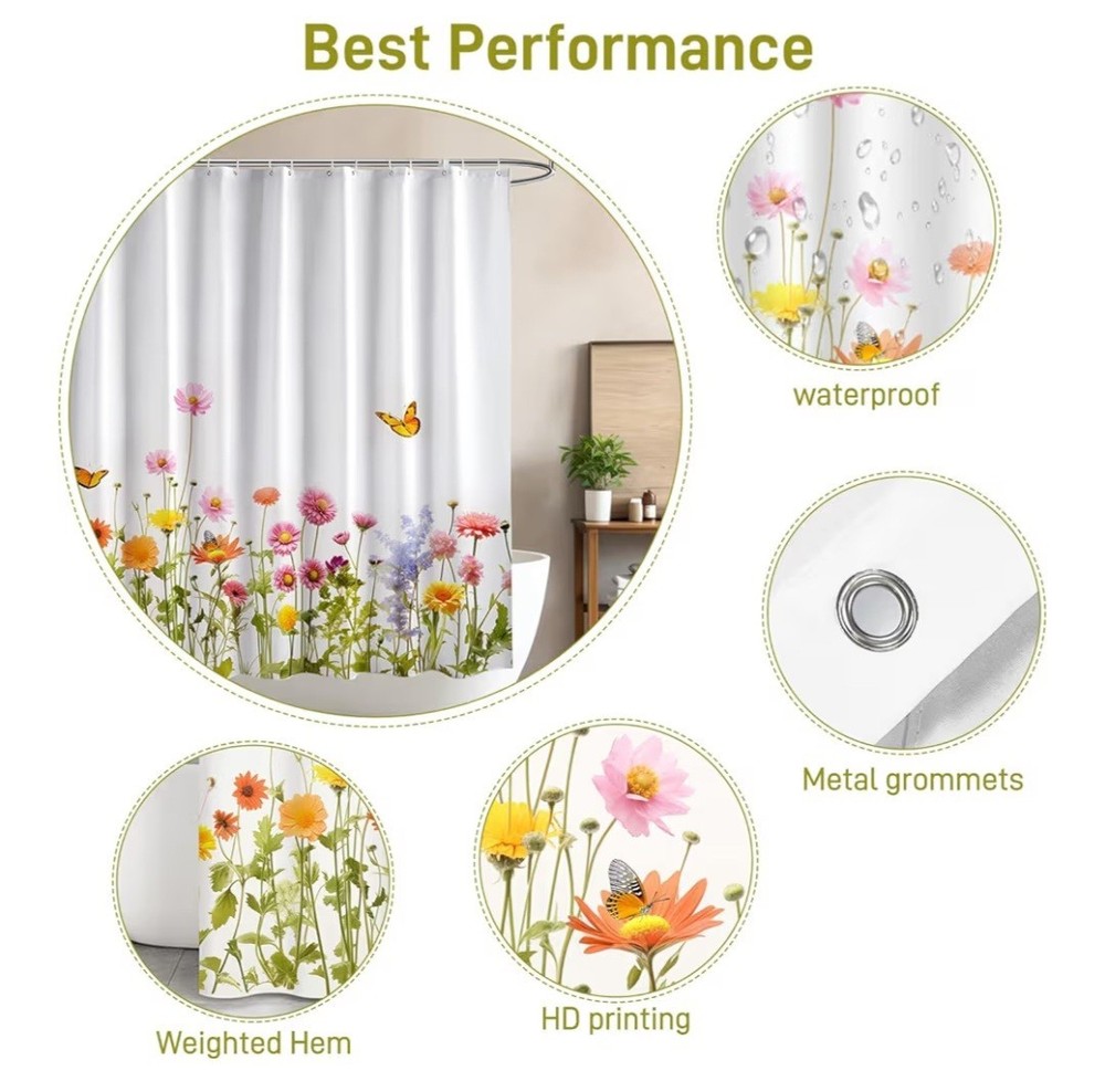 25 Curtains. Great money maker. 72" x 72" with hooks. The product is a wholesale lot of shower curtains with hooks from the brand arichomy. Made of polyester and fabric, these multicolor curtains are perfect for bathrooms. They are new and offer great potential as a retail money maker. This lot of shower curtains is a high-quality and stylish addition to any bathroom, adding a touch of color and functionality.