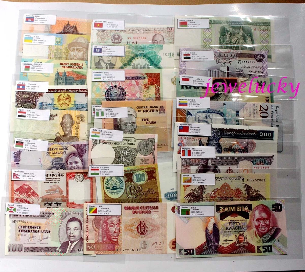 jewelucky usually send package in 1 business day. please use Valid eBay shipping address Shipping to Worldwide : Shipping to Worldwide : US : SpeedPAK usually arrive 10-20 business days. Standard Shipping usually arrive approx in 9-22 business days. Worldwide other countries : Standard Shipping usually arrive approx in 11-25 business days. Economy Shipping usually arrive approx in 35-55days international package sometime delay , please understand. If can not arrive on time please contact to me. payment by PayPal is safe and quick . Description 100% real banknotes paper money Uncirculated Collections There Maybe have a few different of the banknotes, some notes may from same country, but banknotes will be differnt , Total 55 Pcs Notes With 28 Pcs Currency Sleeves Pouch Protect . there maybe have a few different of the banknotes, Total 55 pcs different 28 counrty banknotes different 。countries ref: Croatia Zambia Congo Belarus Mongolia Kyrgyzstan Bhutan China Tajikistan Uzbekistan Guyana Nepal Vietnam Indonesia Cambodia Egypt Laos Afghanistan CIS Myanmar Madagascar Nigeria Malawi Venezuela Peru... Your satisfaction is our goal! If you are not 100% satisfied with your purchase , please feel free to contact us , usually response in 24 hours . have any advice, please contact to us . we will do our best to solve the problem . We do accept refund policy. Just send it back in 30 days. we will gladly exchange, replace . or I can refund . (not include the returning shipping fee ) If you are satisfied with your purchase, please leave us a positive feedback. we will do the same for you. thank you very much