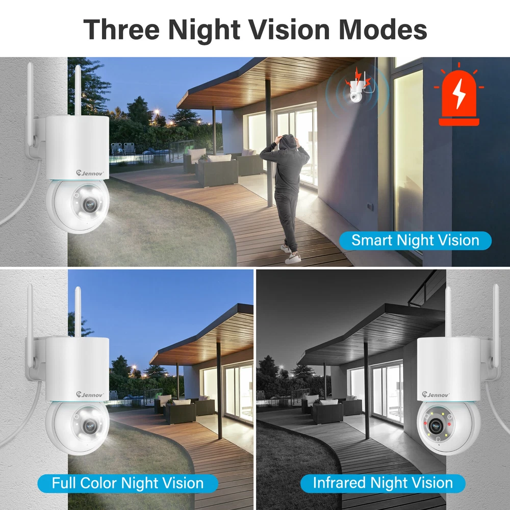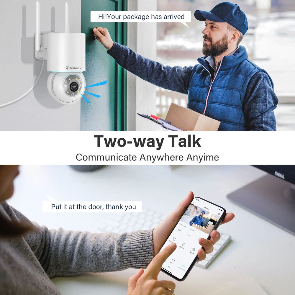 Manufacturer Warranty: 1 Year Voltage: 12 V Color: White Power: 60 W Power Source: Wall Plug-In Location: Outdoor & Indoor Connectivity: Wi-Fi Alarm: Human Detection Smart Home Compatibility: Amazon Alexa Surveillance Technology: IP/Network Number of Channels: 10 Features: Add-On Camera, Instant Alert, Mini Surveillance Camera, Motion/PIR Activated, Multiple Language Support, Night Vision, Outdoor/Weatherproof, Plug in, Wall Mounted, Waterproof, Wi-Fi Items Included: Camera, Receiver Maximum Resolution: 2560x1920 Model: SmartCam Audio: Two Way audio Display Technology: LCD Smart Home Protocol: Wi-Fi Brand: Jennov Type: Surveillance Camera Storage Capacity: 1TB Color Mode: Color Day, B&W Night