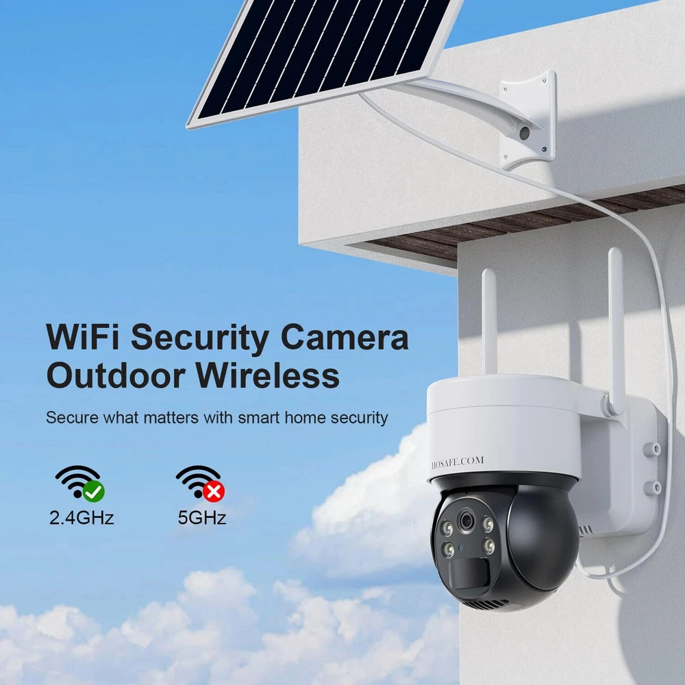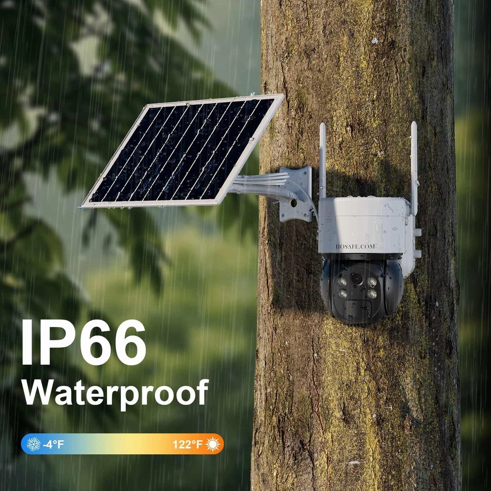 Built for home security, The outdoor camera wireless equips a strong 2.4G WIFI module to keep good performance with stable connection, and works anywhere around your home-- within wifi signal coverage(only 2.4GHz WIFI support). Non-Stop Solar Power: No need frequent battery changes or outlets, this security camera outdoor uses 8W solar panel to charge the battery, making it always ready to capture footage, say bye to power-off. Rotate Camera with 360 View: Remote rotate the home security cameras with pan 270° /tilt 90°, enabling everywhere around the home to be visble, and you can examine any corner with 4x zoom. 2K HD Color Night Vision: See vivid in 2K HD 3MP color vision with IR and spotlights, this outdoor security camera offers stunning- sharp images as daytime. Human Detection & Push Alerts: When someone is near the surveillance area, the solar camera outdoor wireless will be triggered and send instant notifications to your phone, keeping you informed with what's happening in no time. Real-Time 2-Way Talk: After receiving push alerts, you can engage and act to respond by hearing and speaking with visitors via the wireless cameras for home security's microphone-speaker, as if you are there. Secure Storage Options: Recordings are saved to the local SD card(64GB, included), and optional cloud storage is available that you can easily playback anytime no matter the solar camera outdoor wireless online or offline. Multi-User Sharing & Custom Arming: Share the wireless camera with family and friends, enabling them to receive push alerts and have a live view with their phone. Plus arming time setting on the Ubox app, easily reducing unwanted alerts. IP66 Weatherproof: the wireless security camera outdoor is IP66 waterproof and resists any extreme weather within -4°F to 122°F, such as dust, rain and snow.